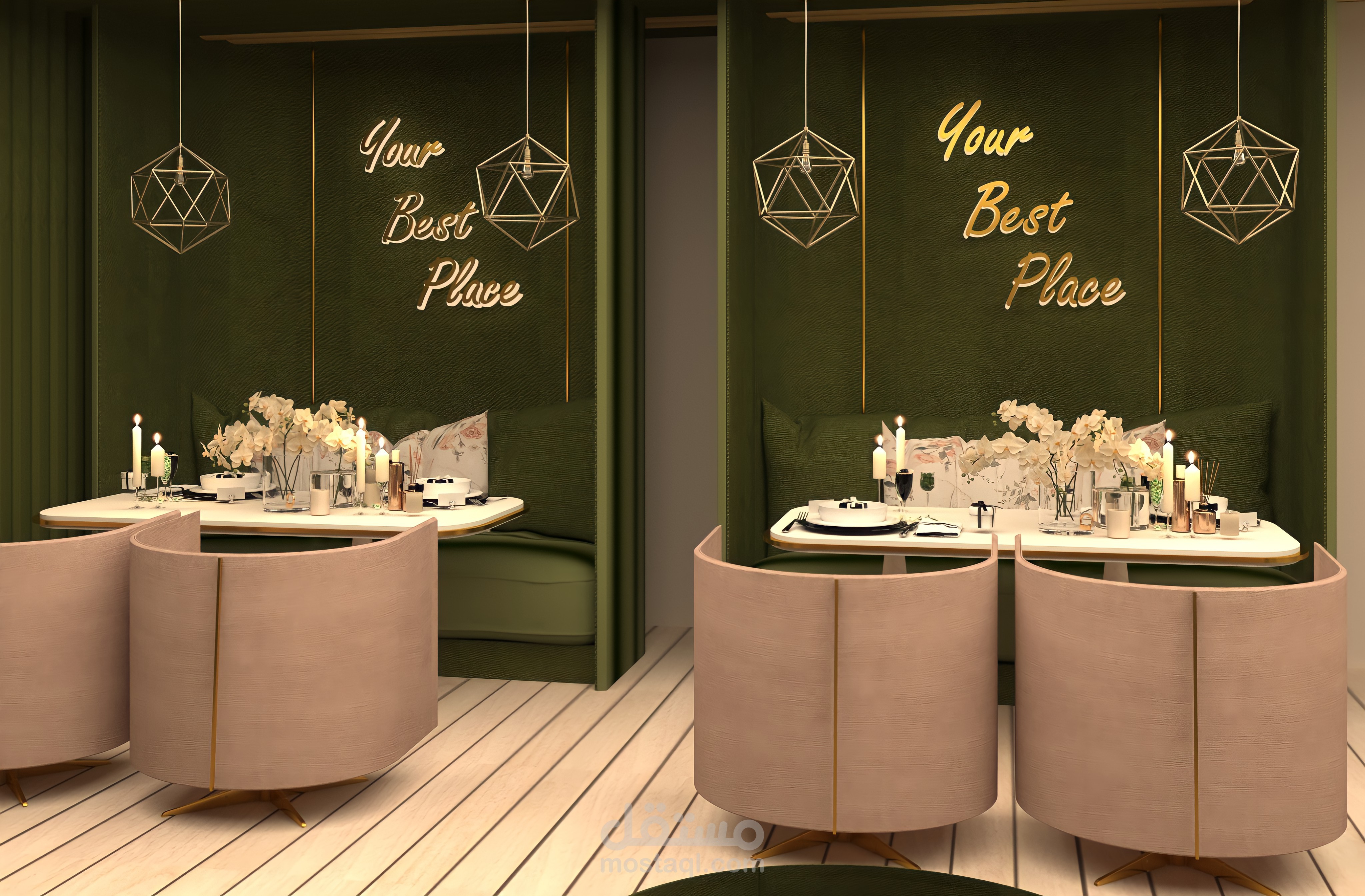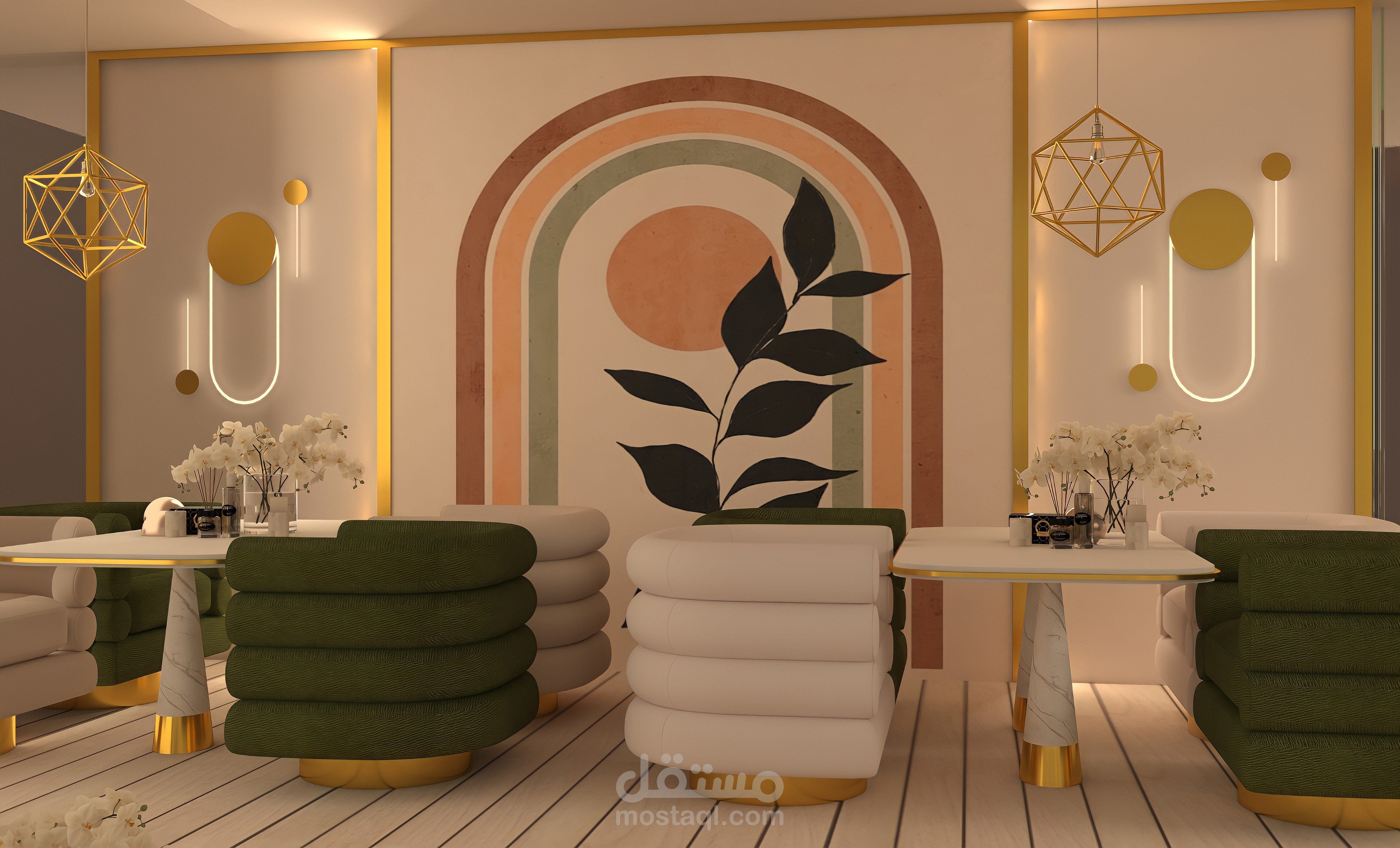 تصميم داخلى لمطعم ب Mid Century Modern Style