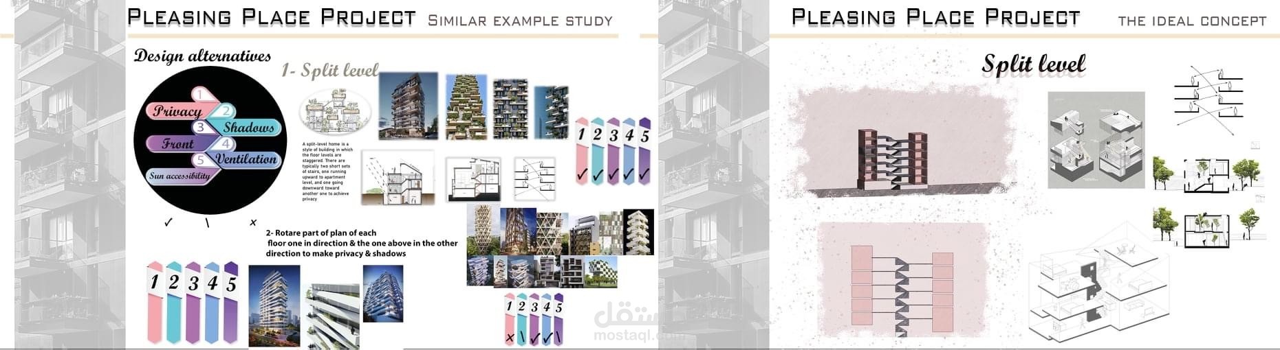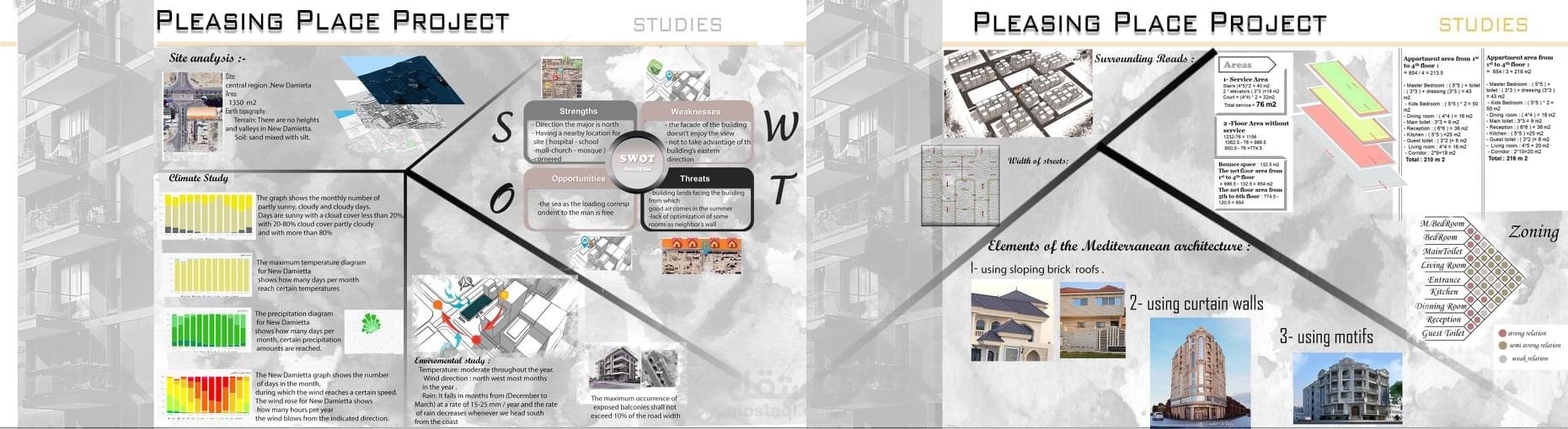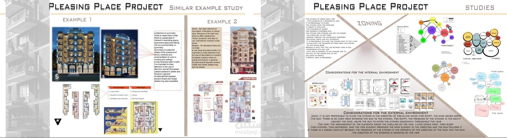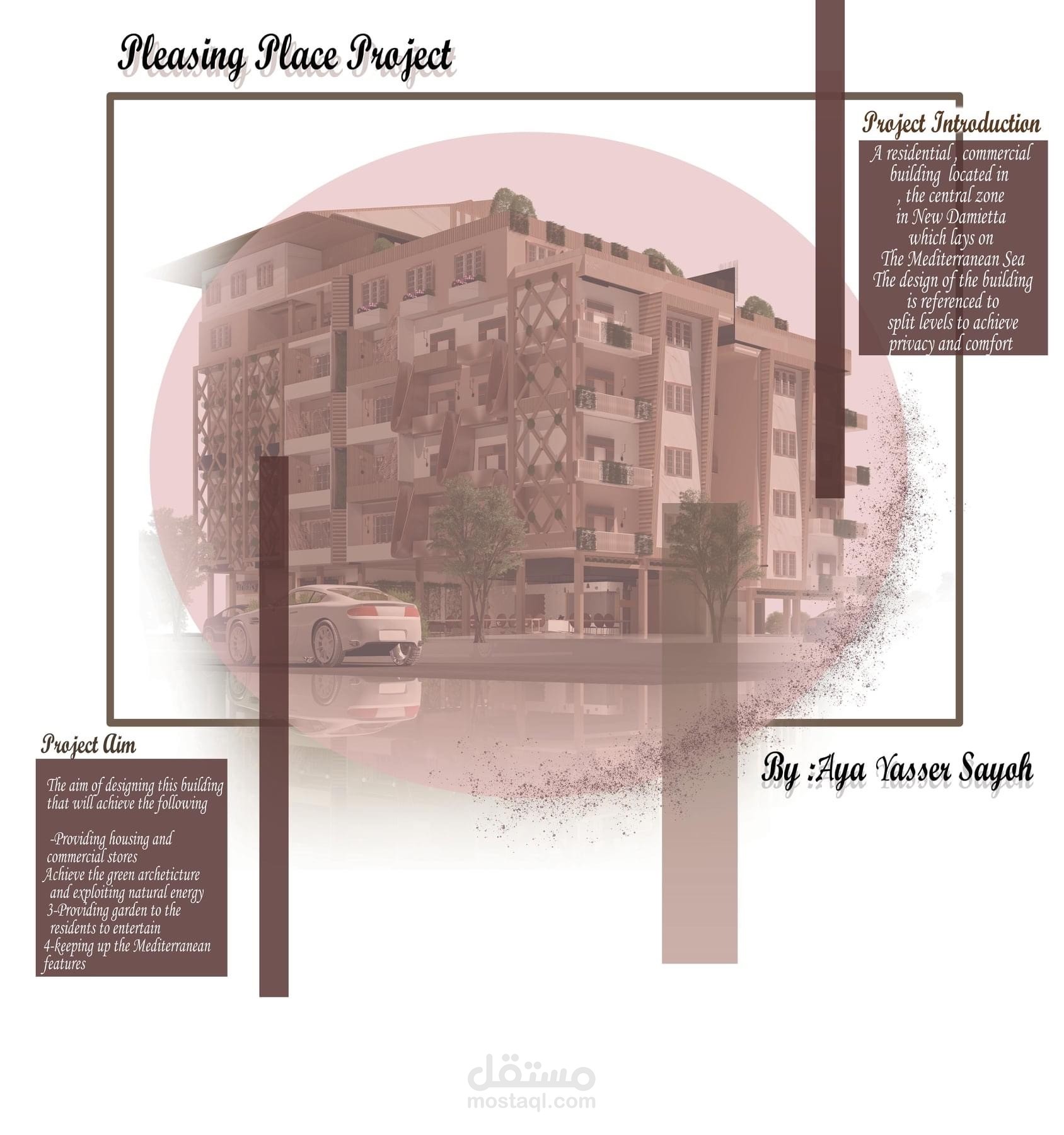 مشروع متكامل لتصميم مبنى سكنى تجارى بدراسات و تحليل و مساقط افقيه وواجهات و قطاع