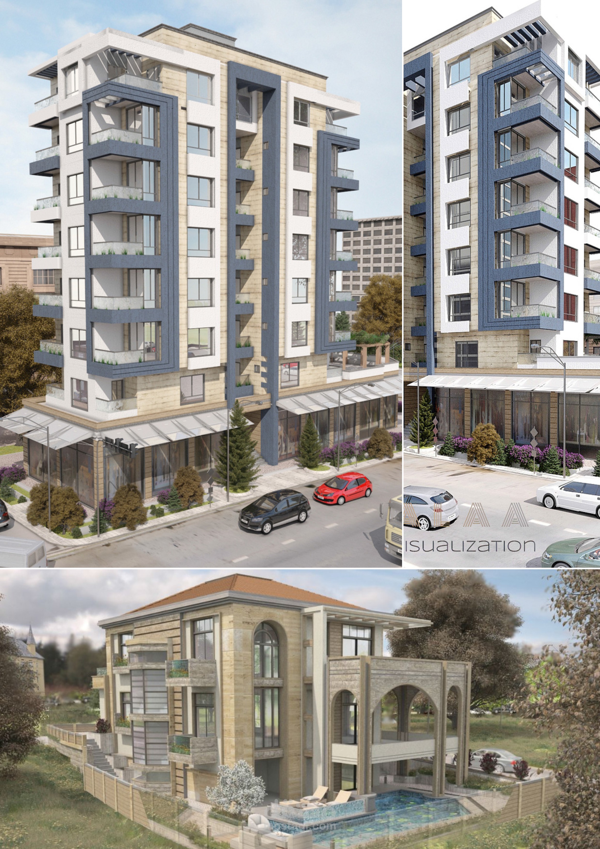 using architecture softwires (3D MAX, VRAY ,CORONA, AUTOCAD ,LUMION )