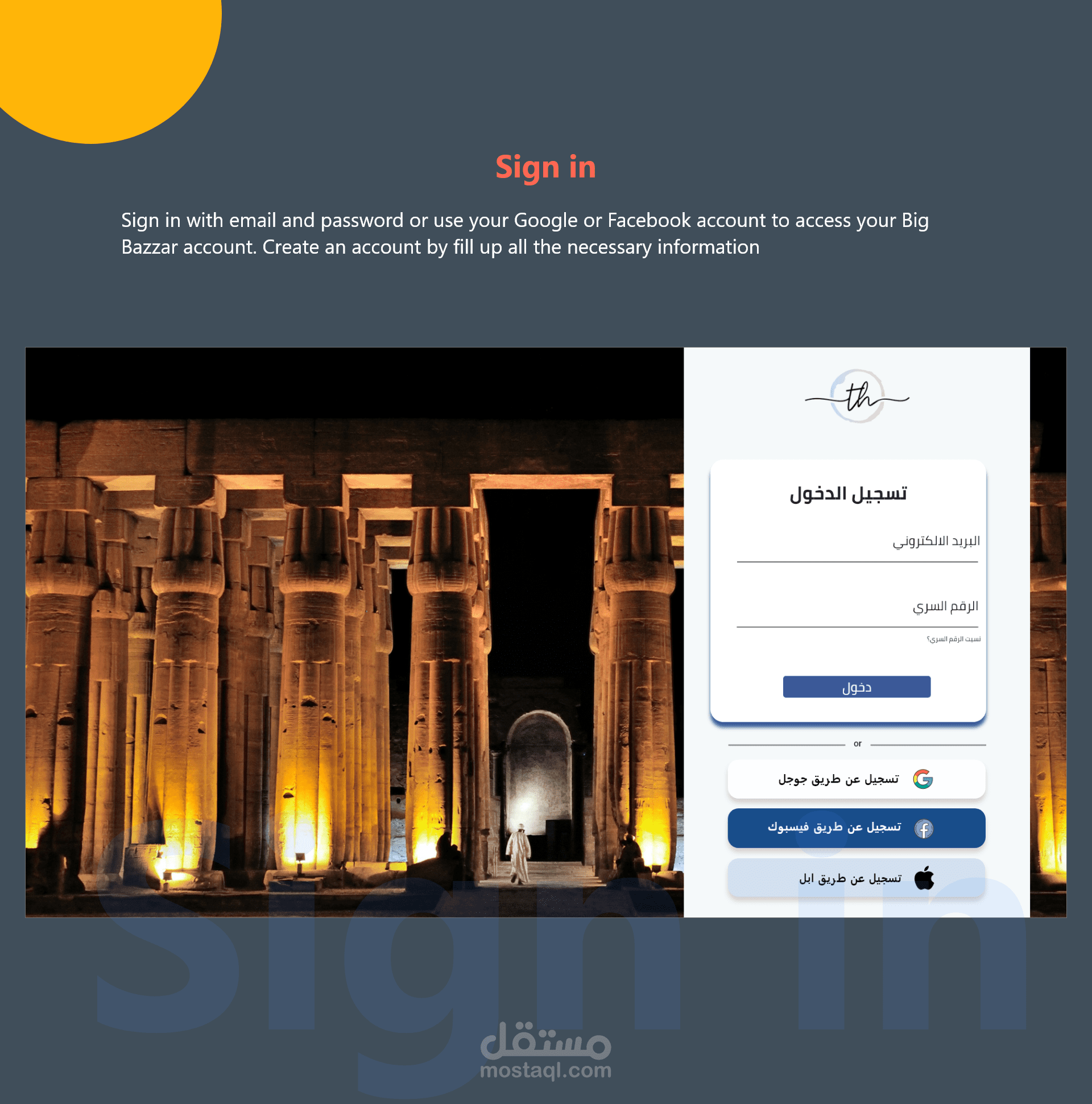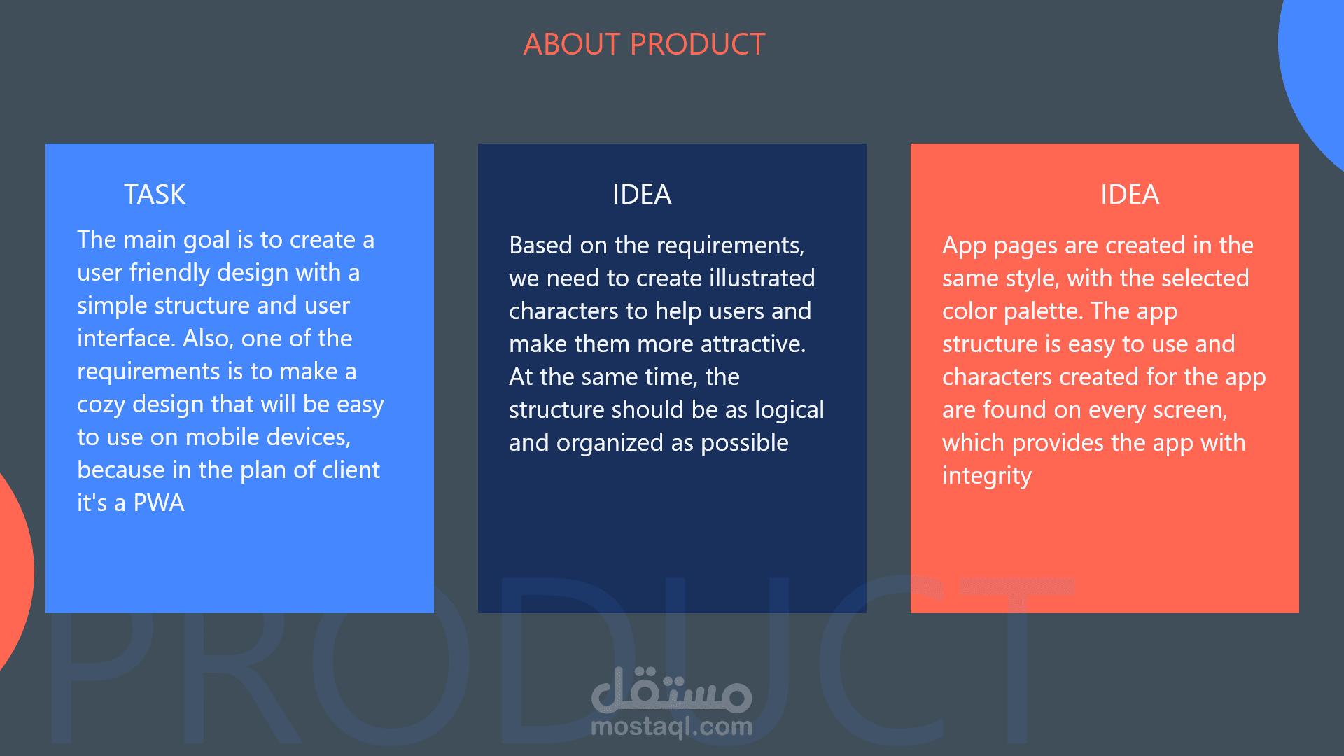 تم اختيار الفكرة والمتطلبات من قِبل العميل ثم الاتفاق على التصميم المناسب وتنفيذه باستخدام برنامج XD .