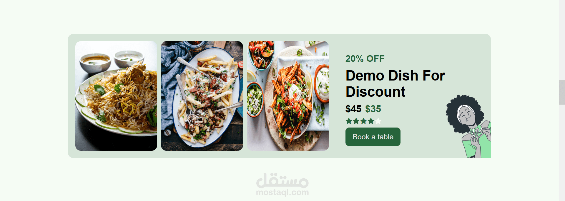 في هذا العمل ، قمت بإنشاء موقع متجاوب مع كافة الاجهزة لمطعم يمكنك من خلاله معاينة من قائمة الطعام وحجز طاولة.