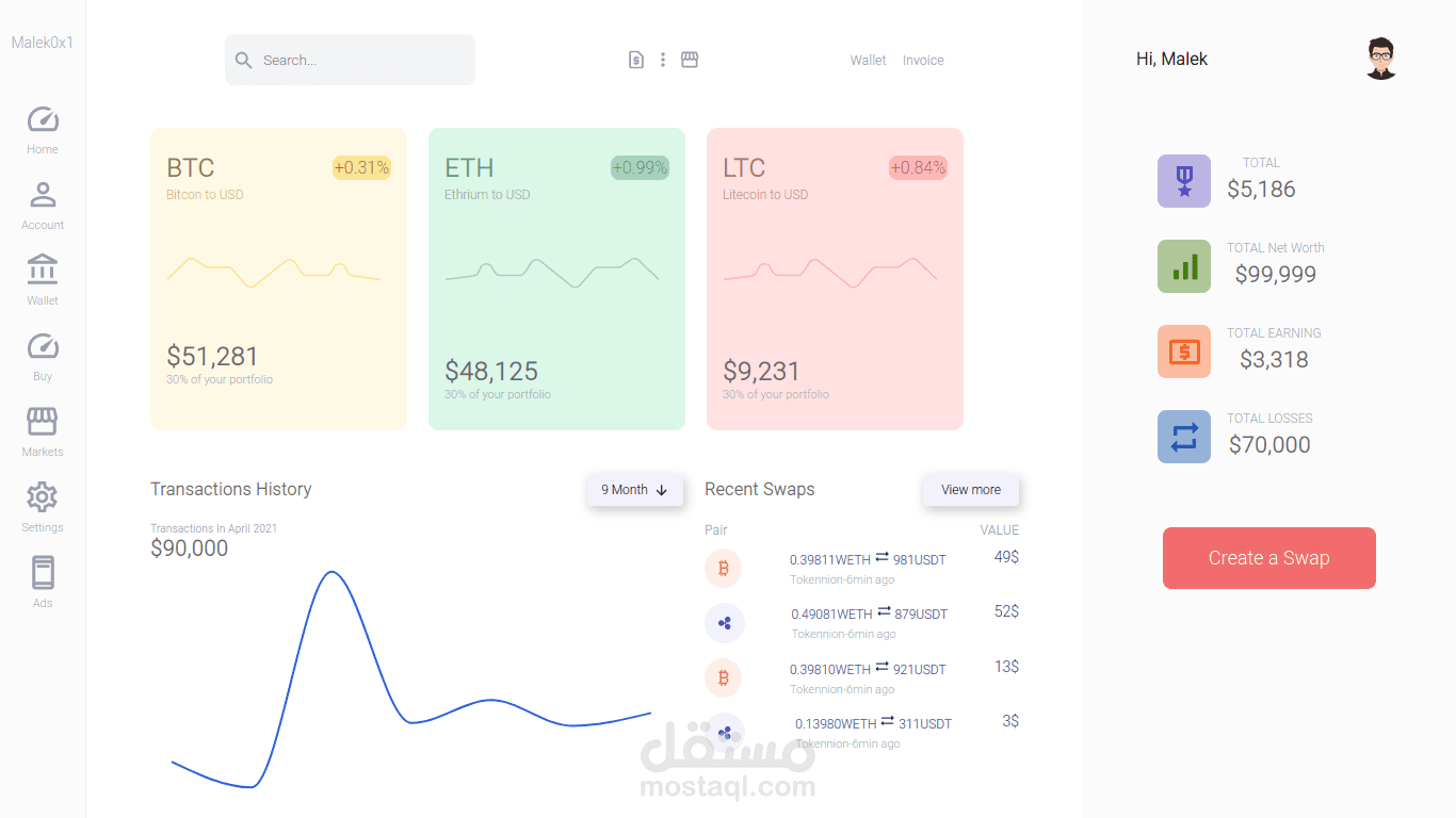 Cryptocurrency Dashboard 1 (React)