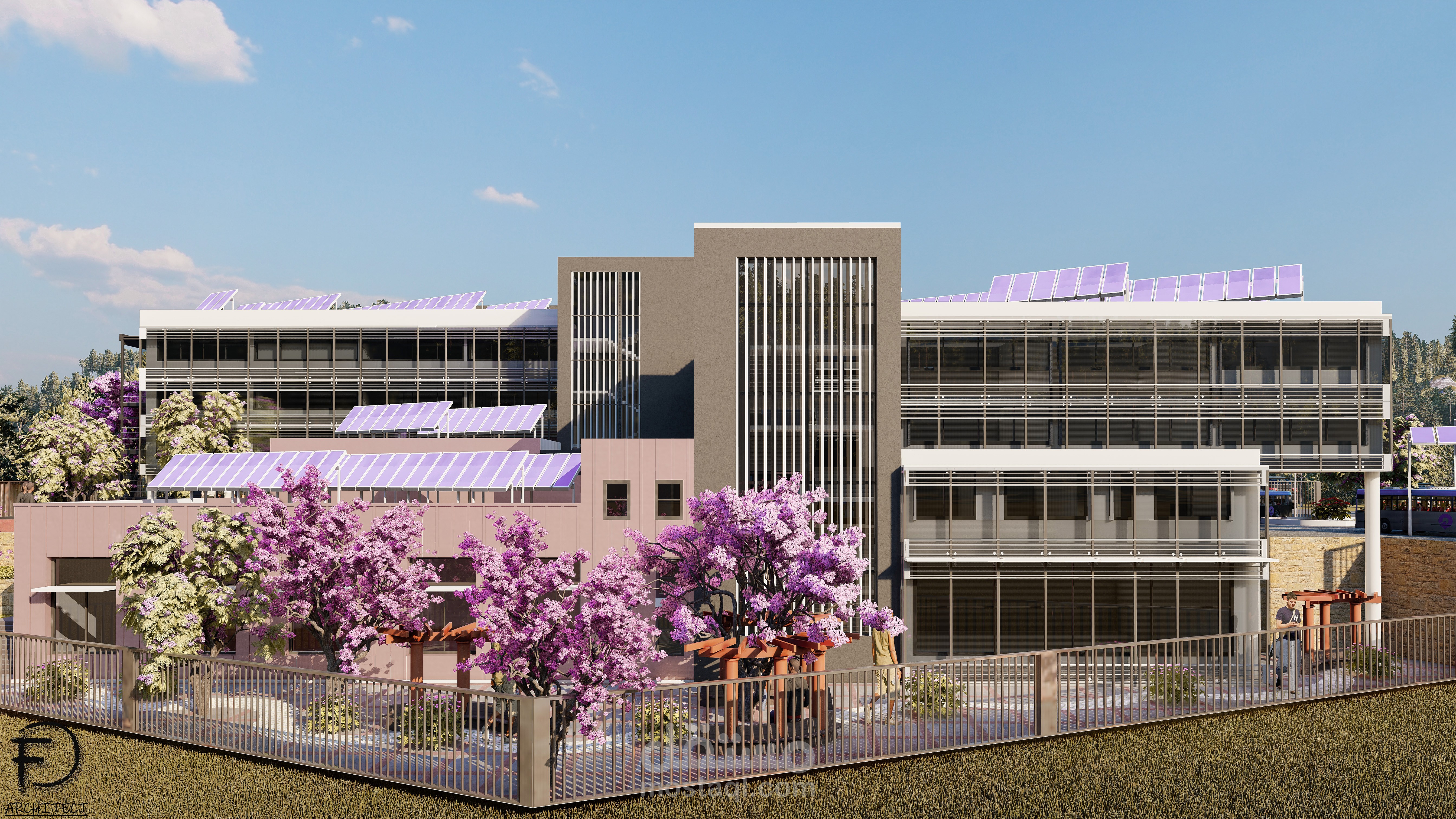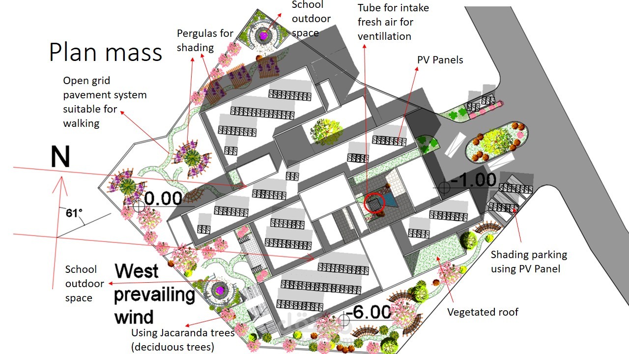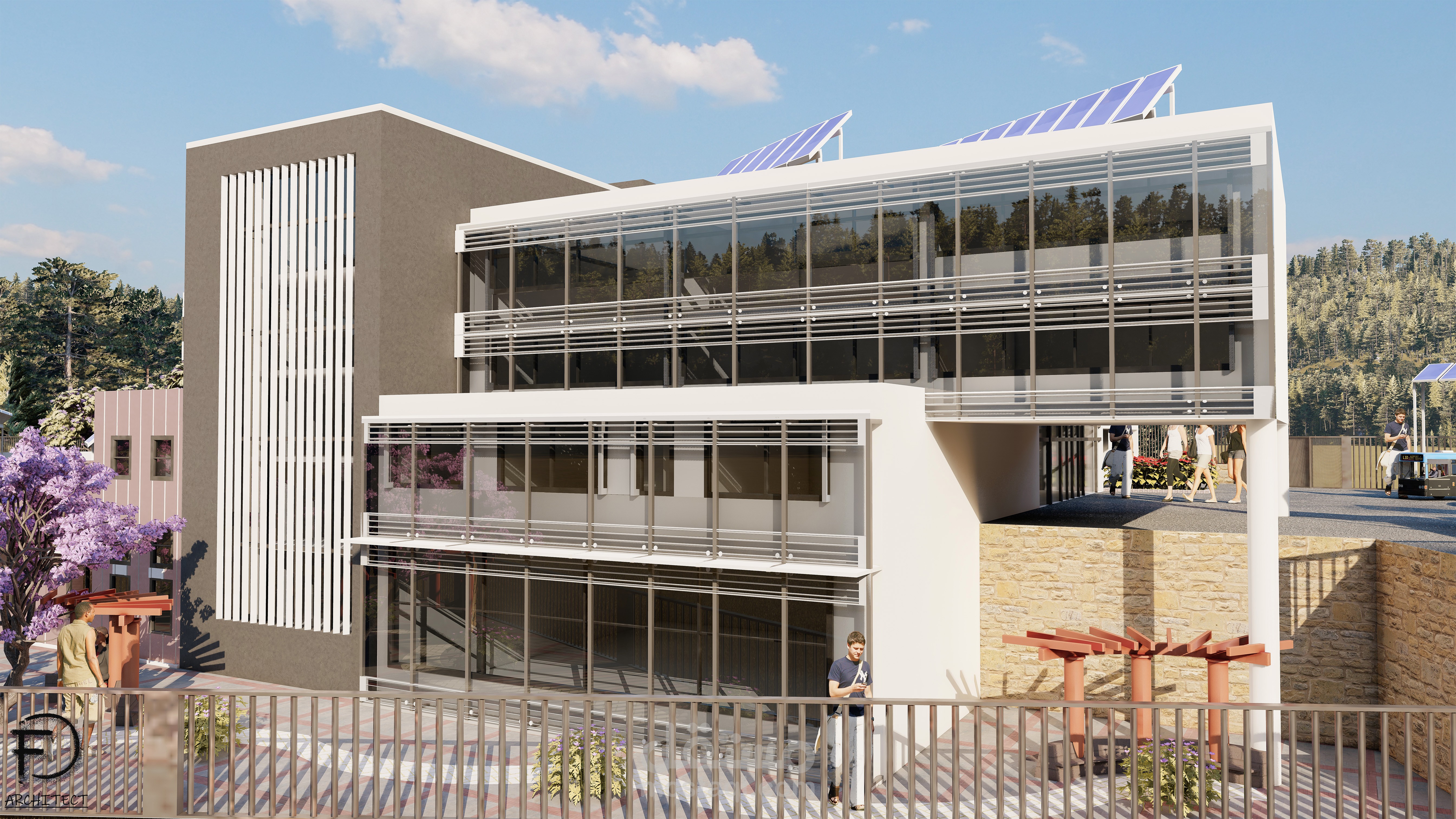 تم توظيفي لتصميم مدرسة مستدامة في منطقة حيث كان الطقس جاف ورطب (لبنان) باستخدام مواد بناء حديثة، حيث أنني رفعت المساحات و صممت الواجهات والخرائط المطلوبة بواسطة برنامج وأتوكاد وإستخدمت sketchup لتصميم خارجي ثلاثي الأبعاد وأخيراً إستخدامت Lumion للرندر الواقعي.
