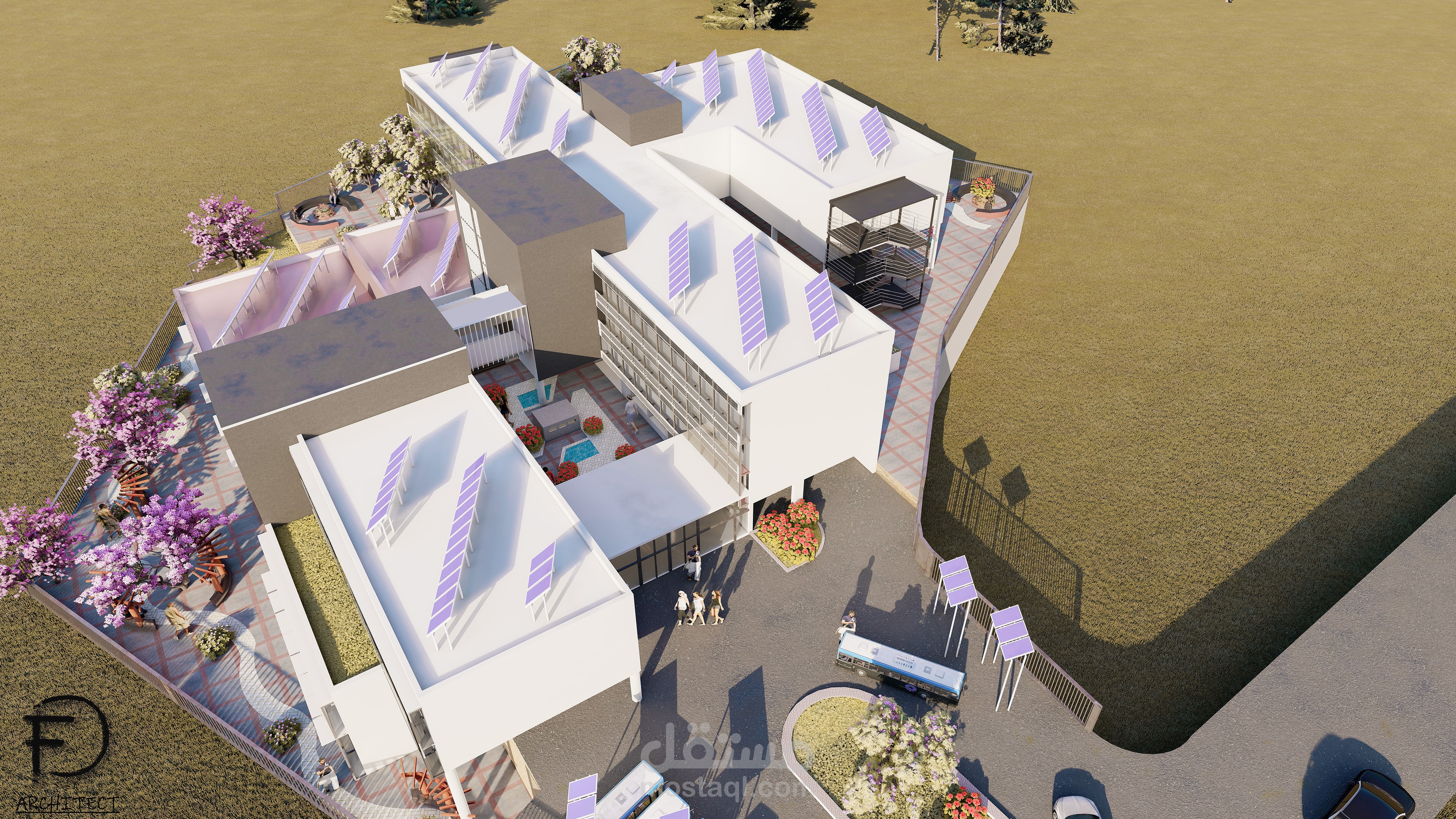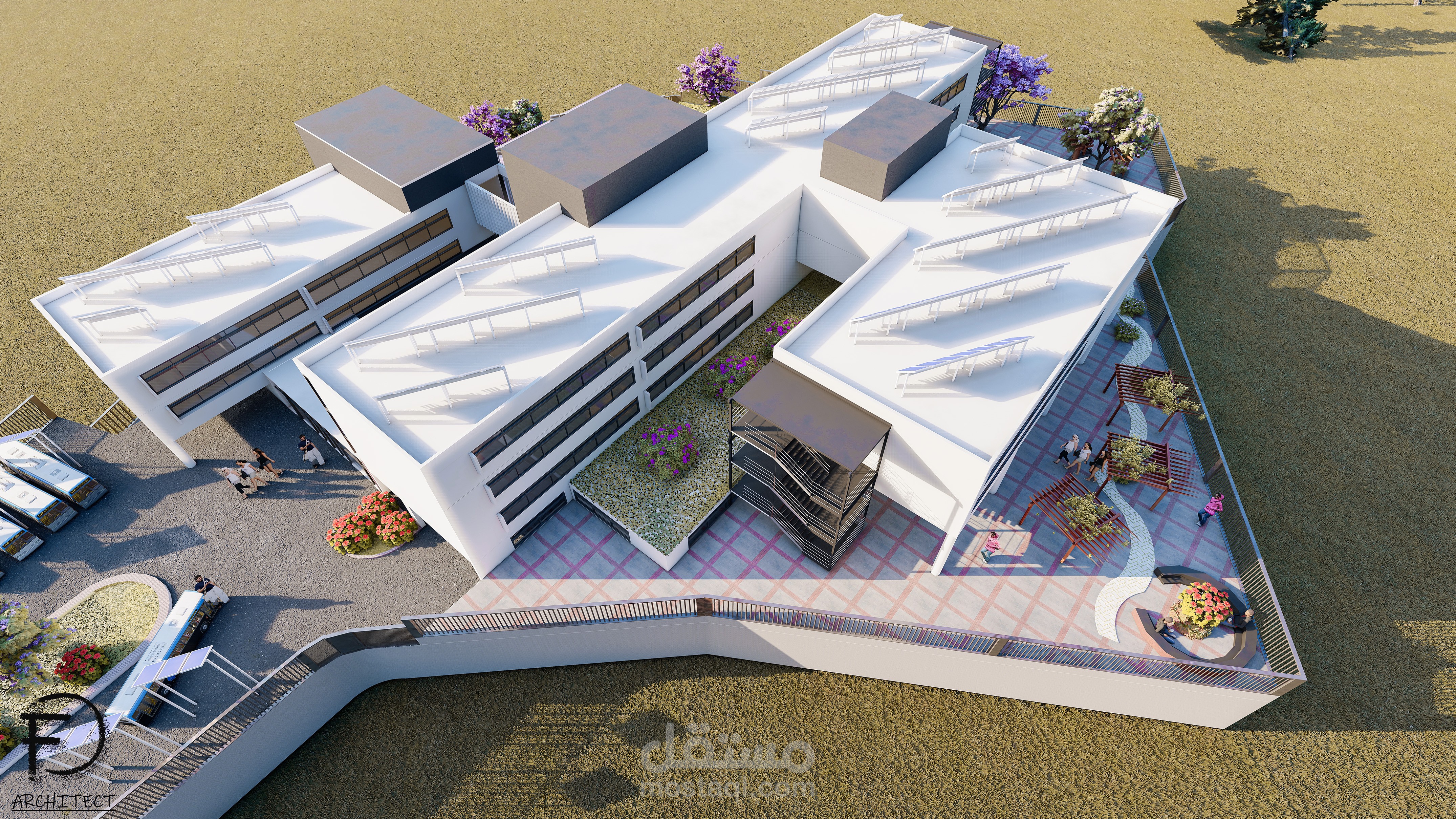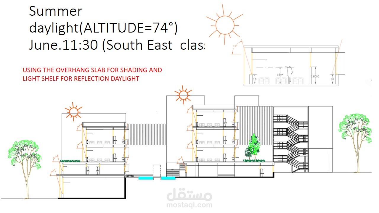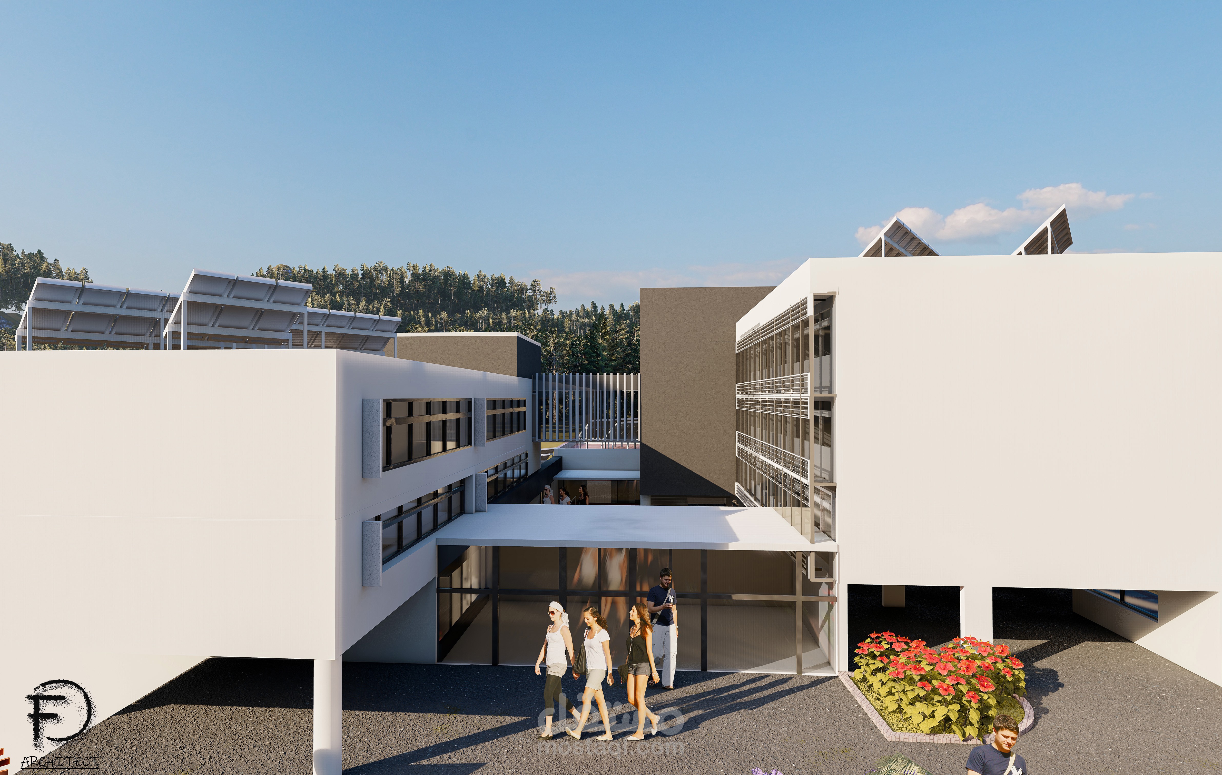تم توظيفي لتصميم مدرسة مستدامة في منطقة حيث كان الطقس جاف ورطب (لبنان) باستخدام مواد بناء حديثة، حيث أنني رفعت المساحات و صممت الواجهات والخرائط المطلوبة بواسطة برنامج وأتوكاد وإستخدمت sketchup لتصميم خارجي ثلاثي الأبعاد وأخيراً إستخدامت Lumion للرندر الواقعي.