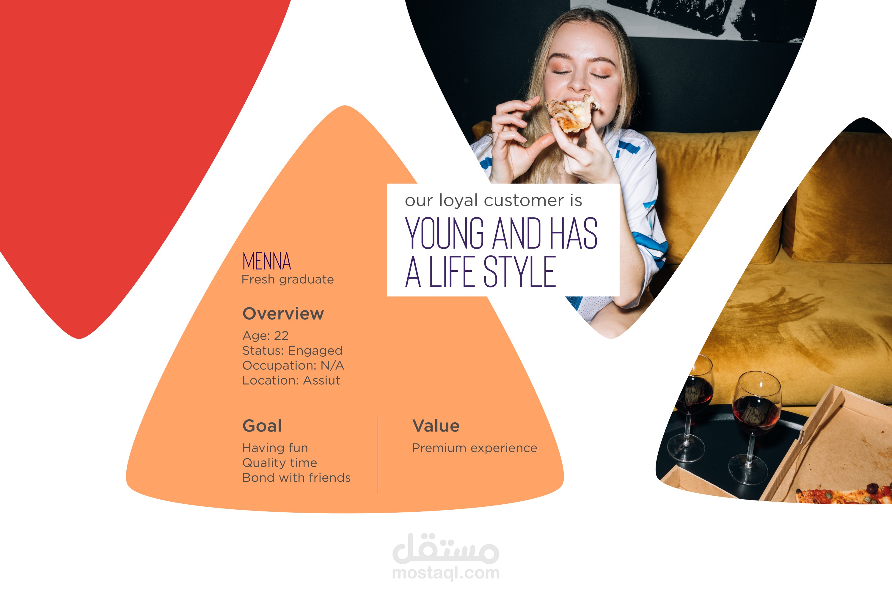 تصميم هوية بصرية لمطعم ومقهى للشباب يقدم مأكولات سريعة ومشروبات متعددة
