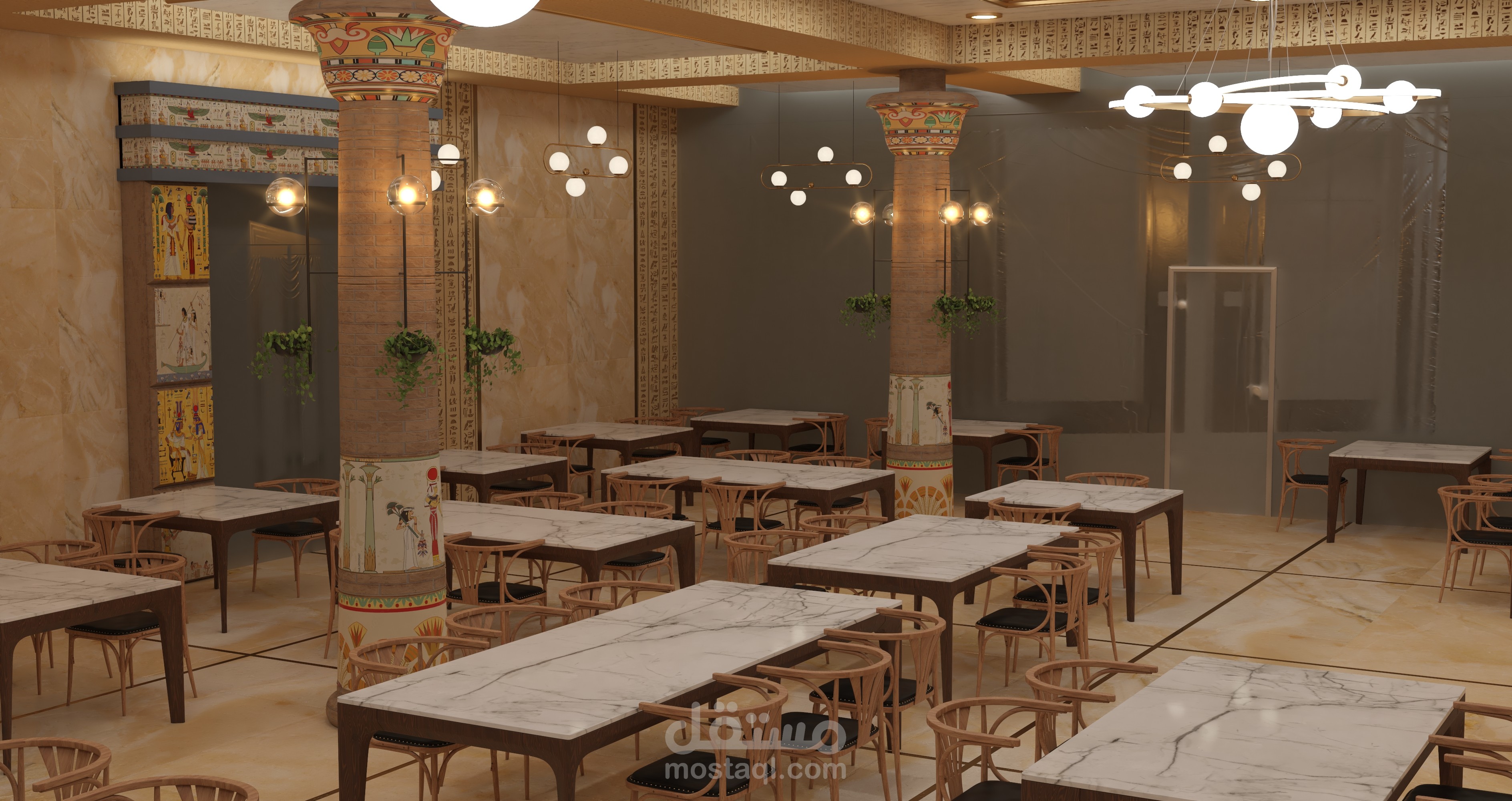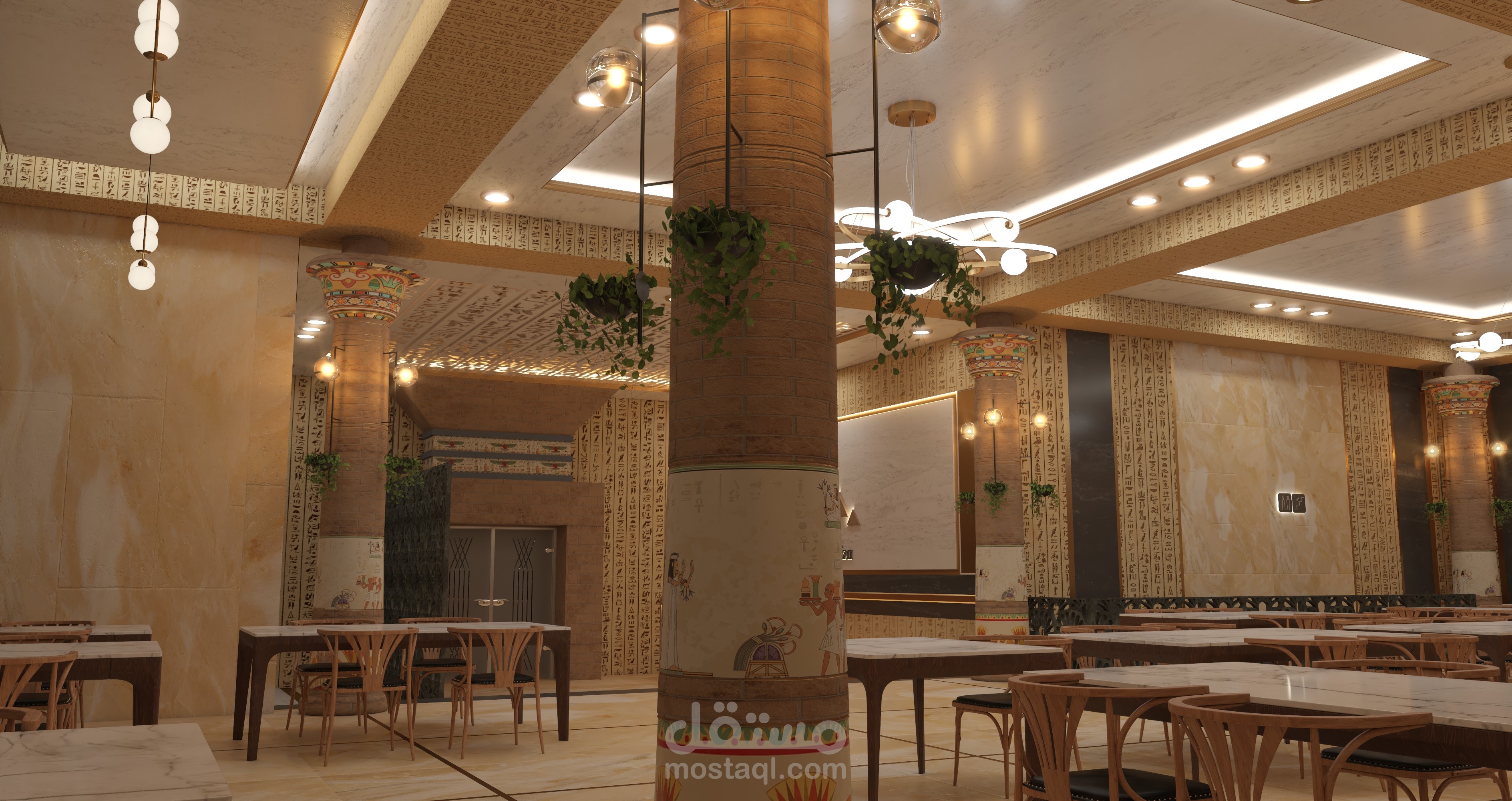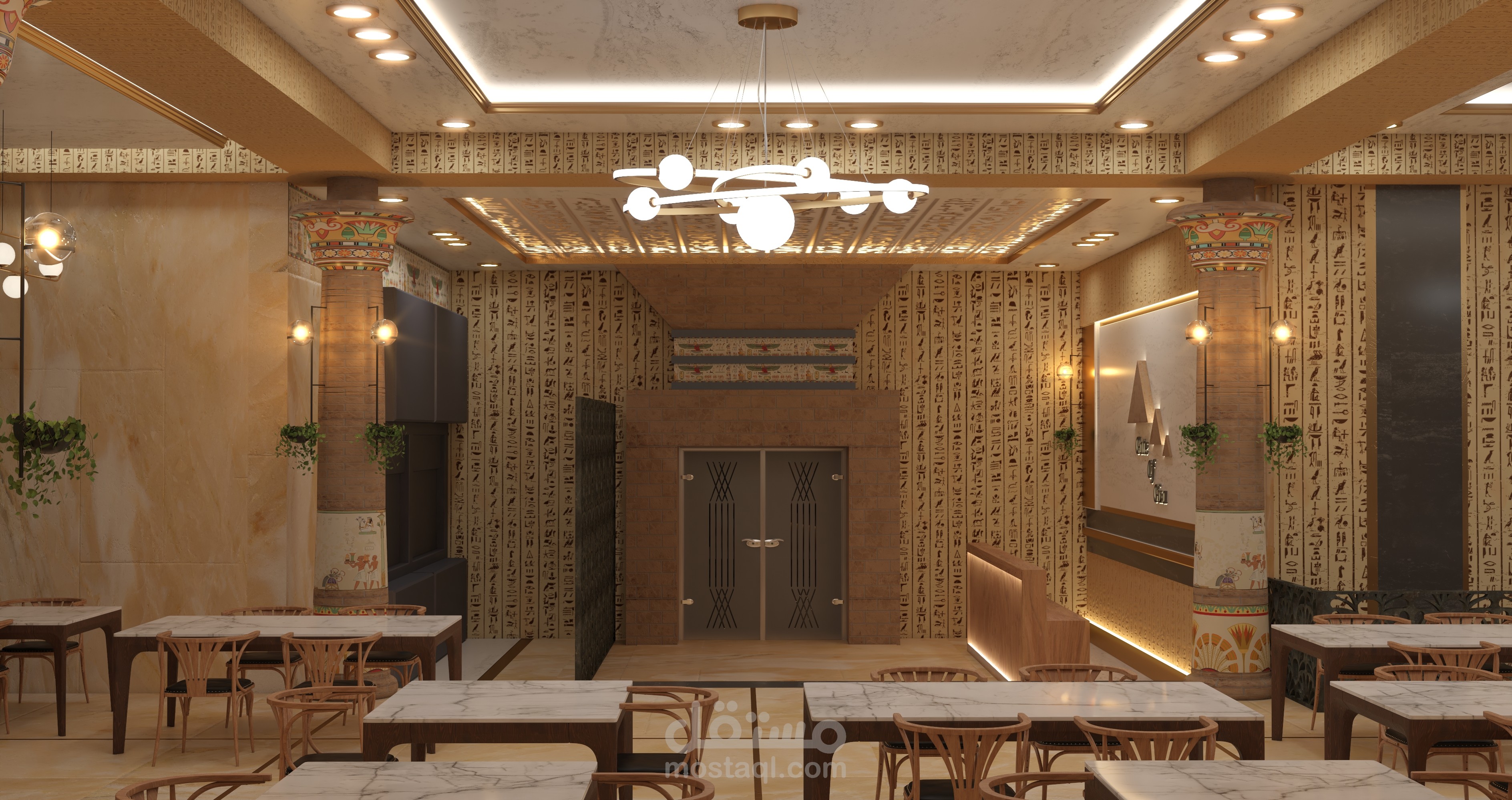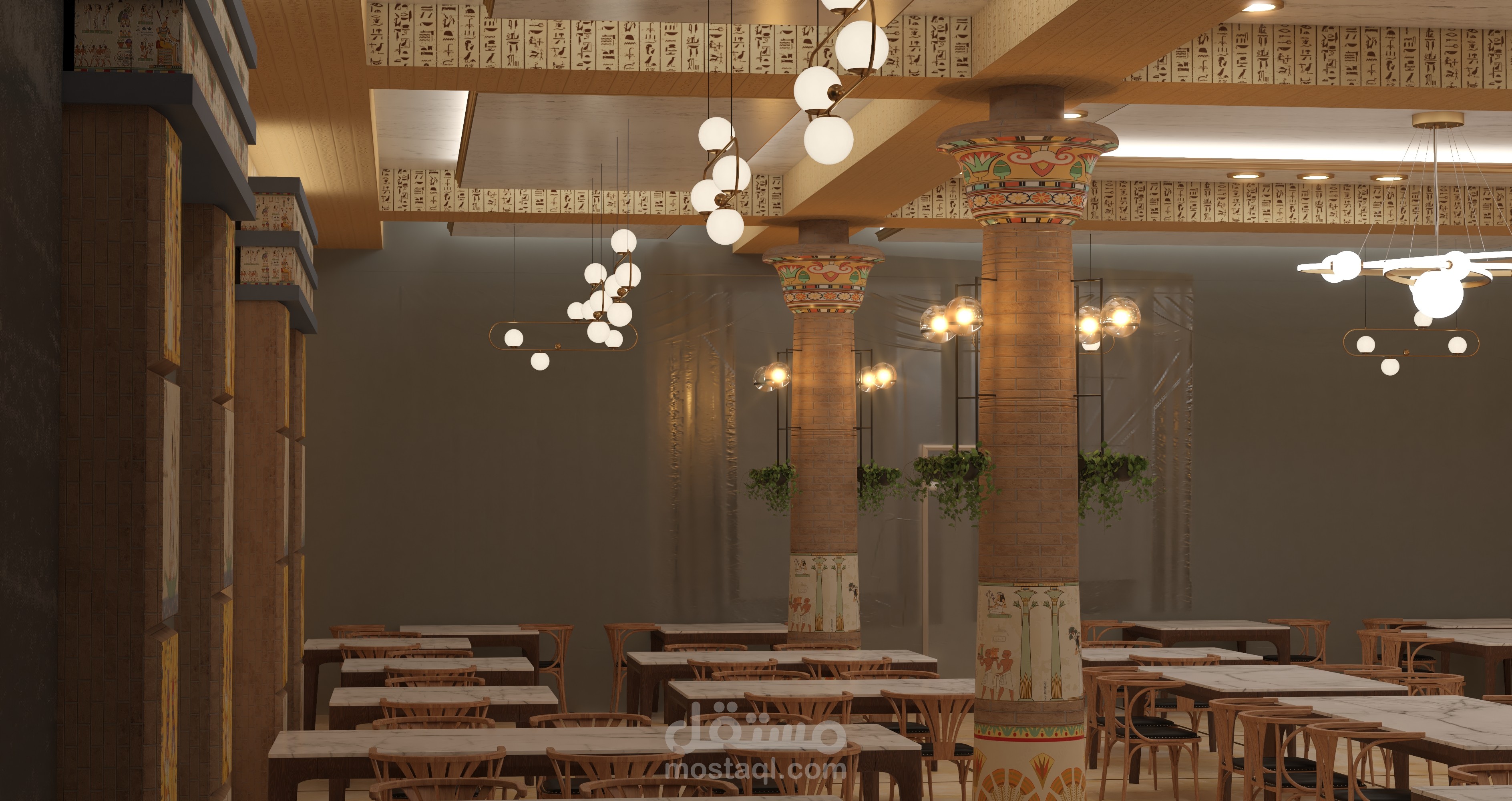 تصميم مشروع مقترح ل مطعم بطريقة تاريخية حضارية ولمسات مصرية داخل متحف الفنون الجميلة - اسطنبول