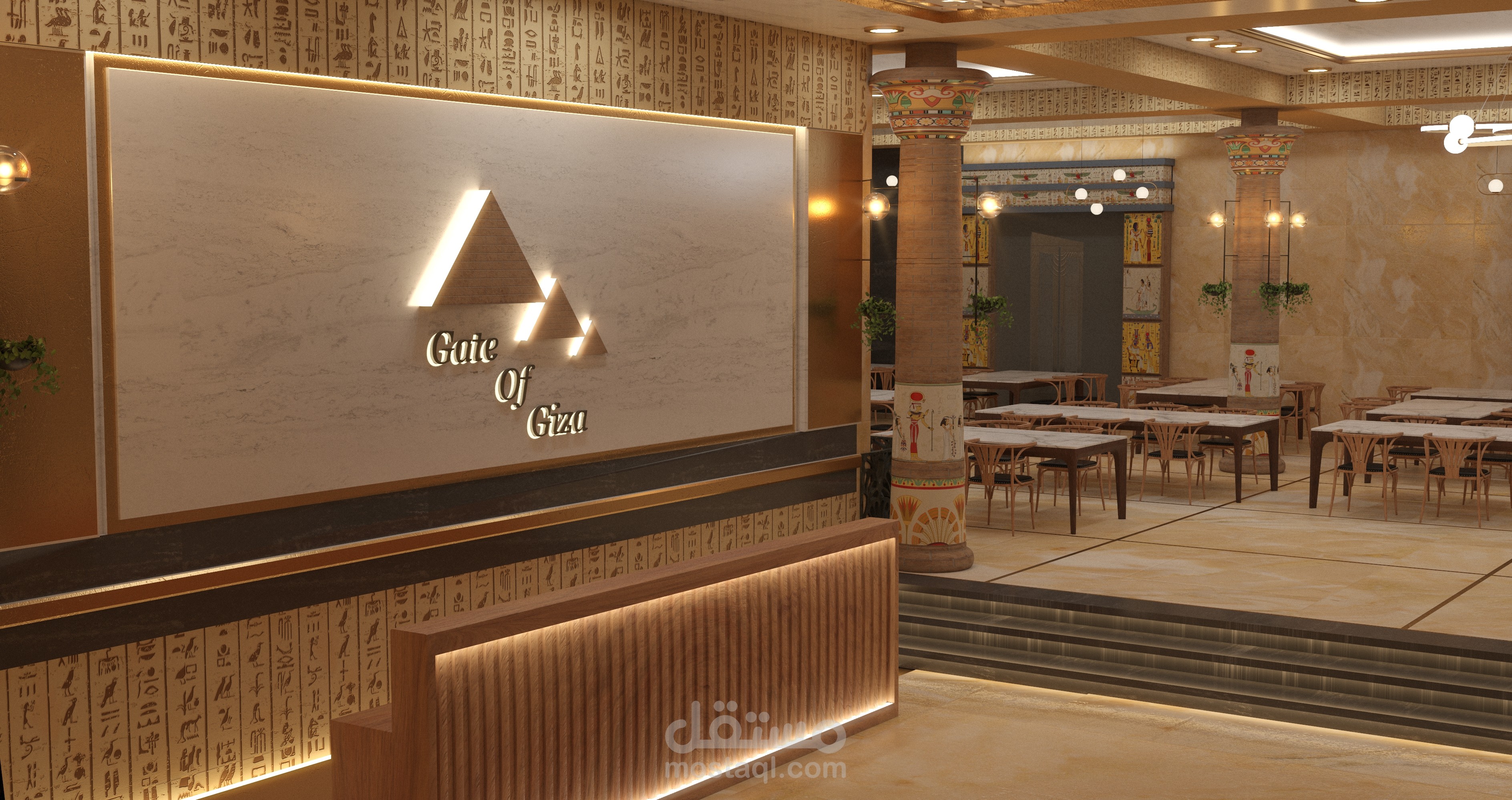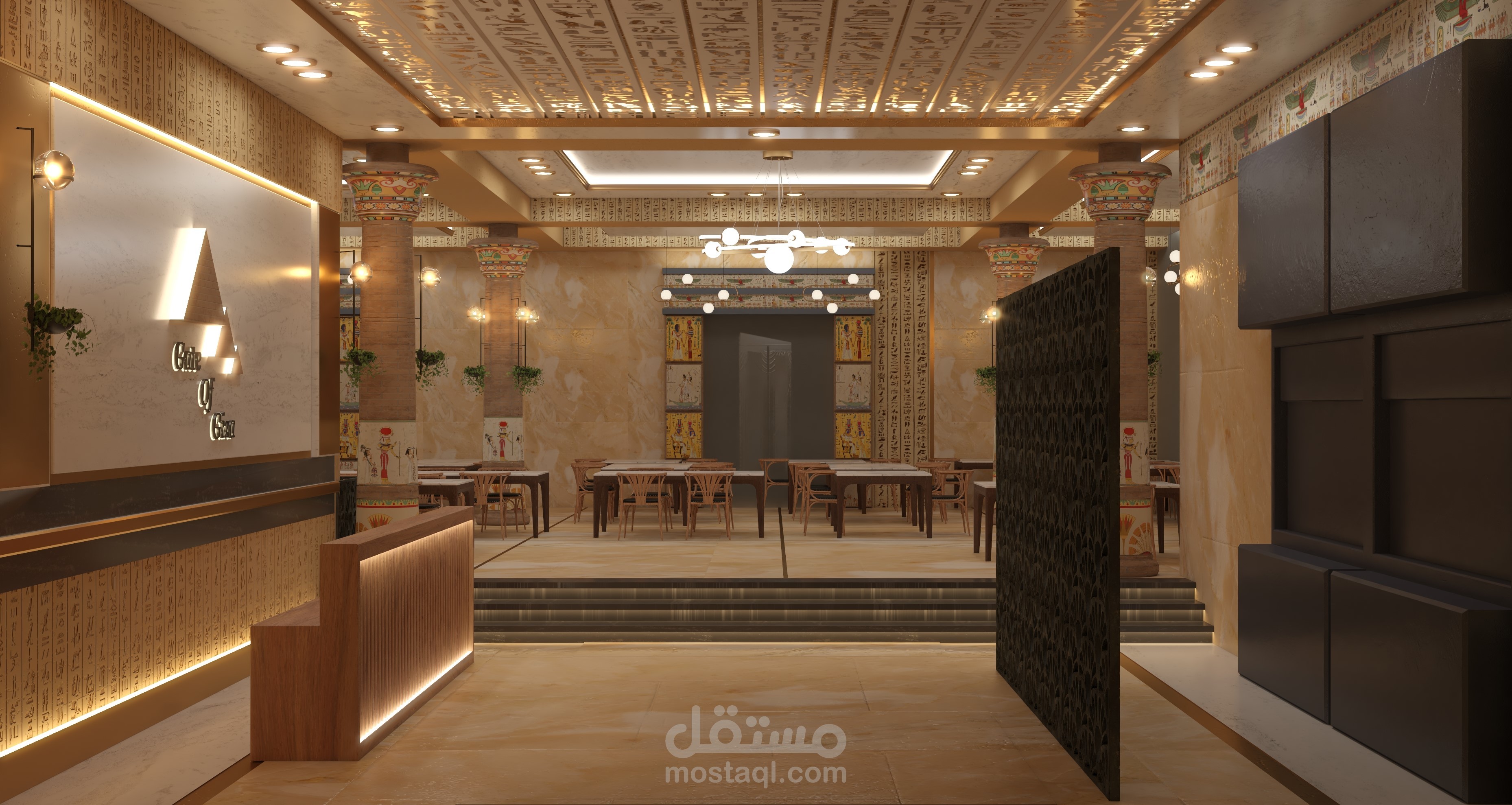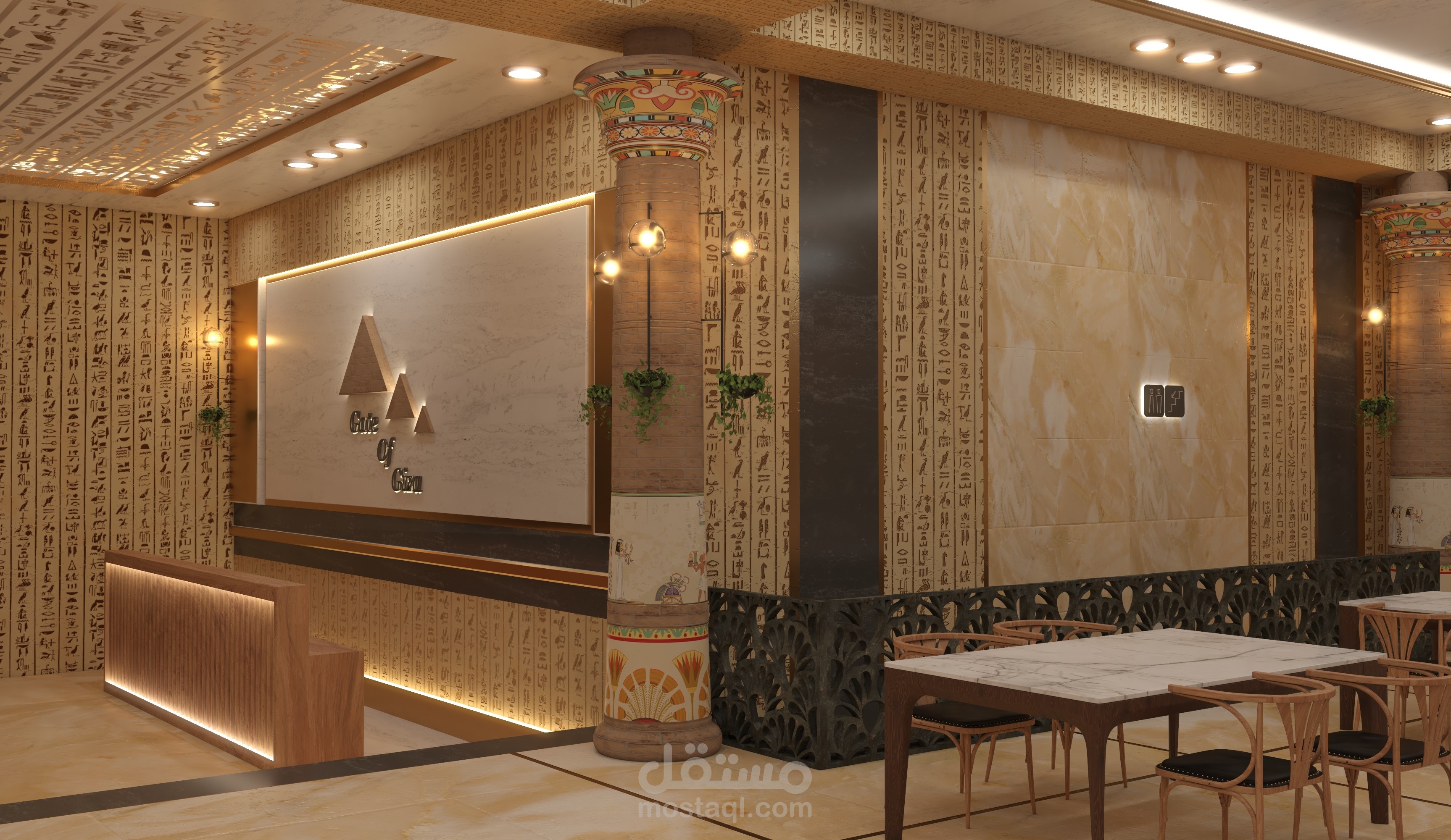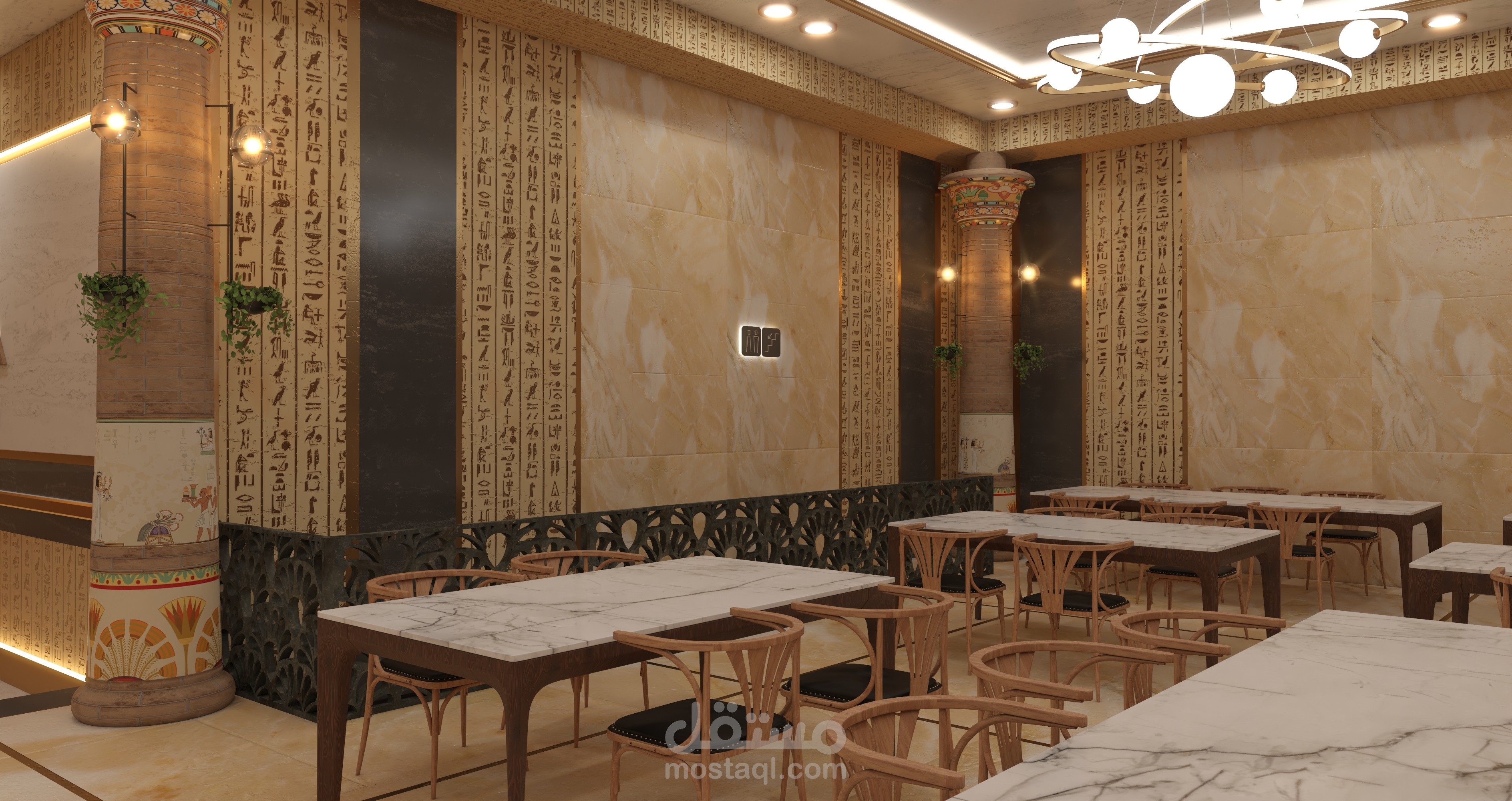 تصميم مشروع مقترح ل مطعم بطريقة تاريخية حضارية ولمسات مصرية داخل متحف الفنون الجميلة - اسطنبول