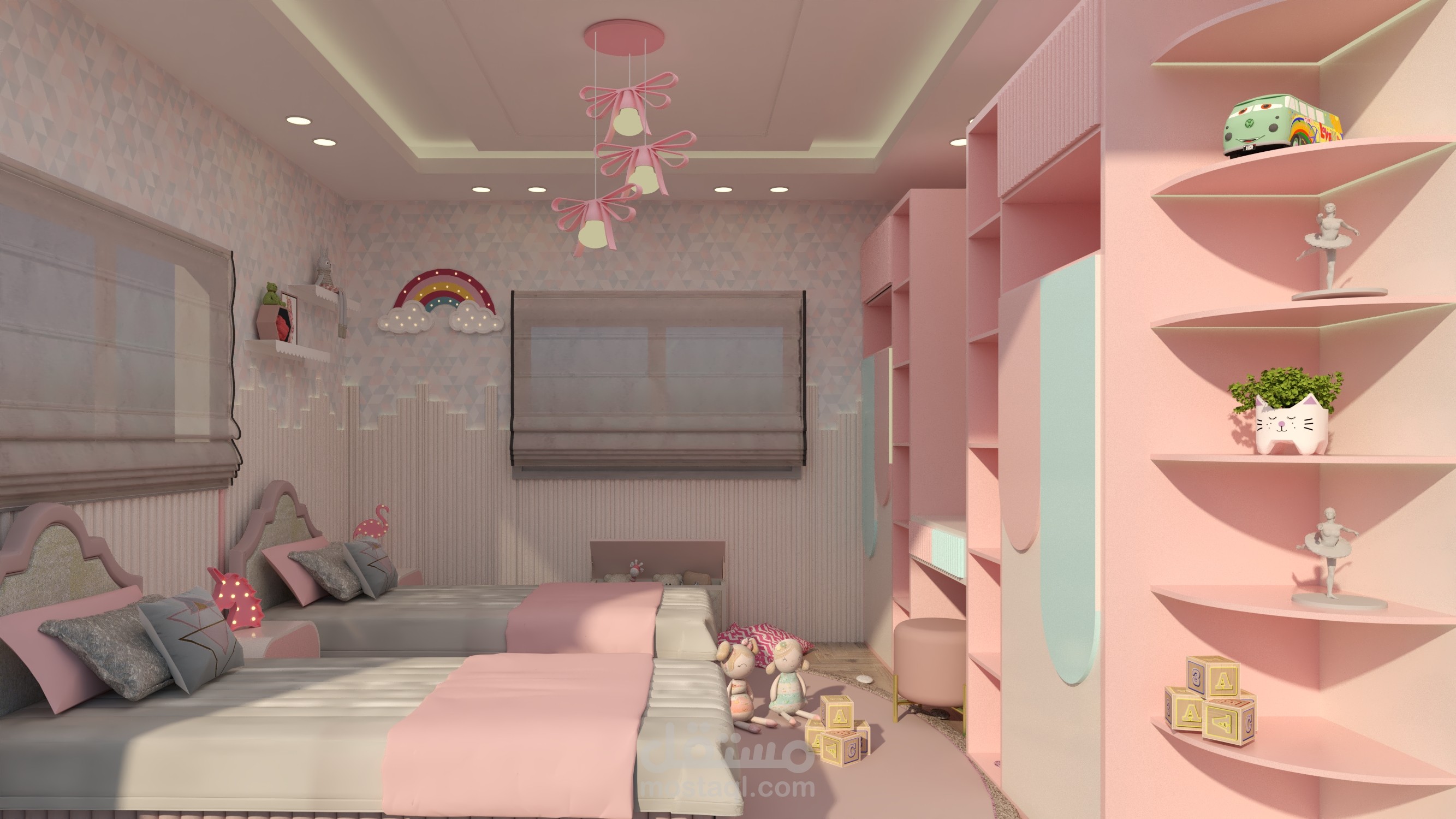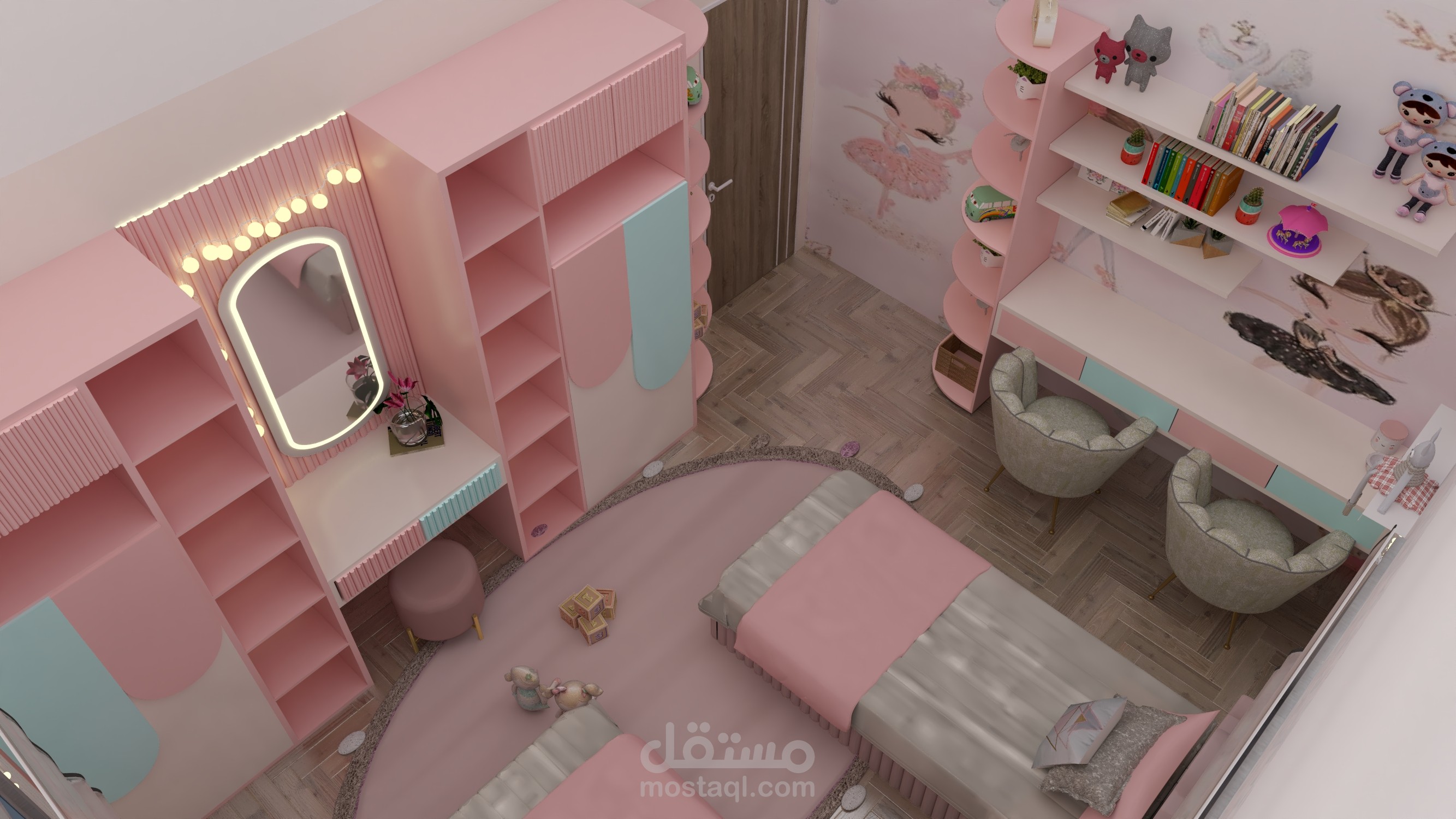 غرفة نوم هادئ للبنات صغار بالوان جذابه ومرايحة