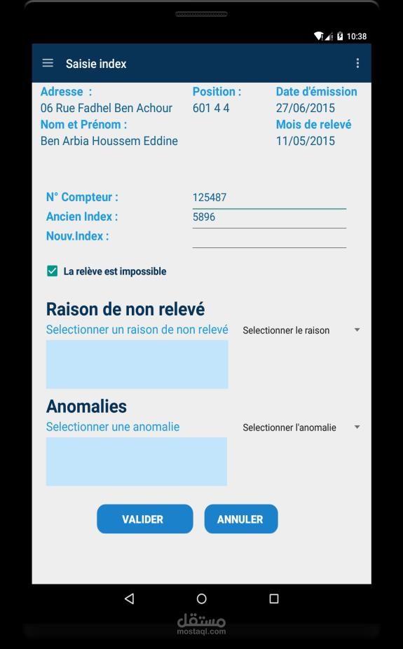 تطبيق اندرويد يقوم بإدارة عمليات رفع العدادات الخاصة بشركة الكهرباء و الغاز.وهذا بتمكين المشرفين من متابعة و تفعيل جداول رفع العداد كما يمكن رافع العداد من تصفح جدوله الخاص و حفظ قراءة العداد في قاعدة البيانات.
