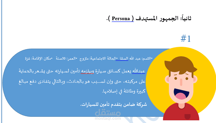 تحديد السوق المستهدف باستخدام البيرسونا و تقسيمها الى فئات.