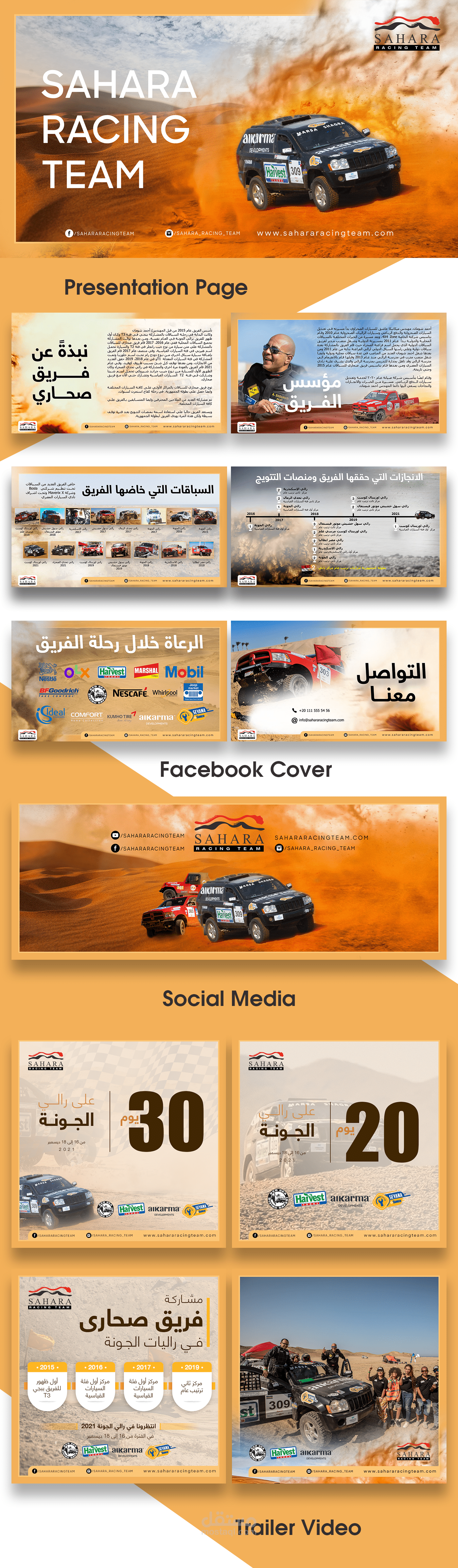عمل البروفايل الخاص بفريق "صحارى للسباقات" وتصميمات السوشيال ميديا للفريق على مواقع التواصل الاجتماعي