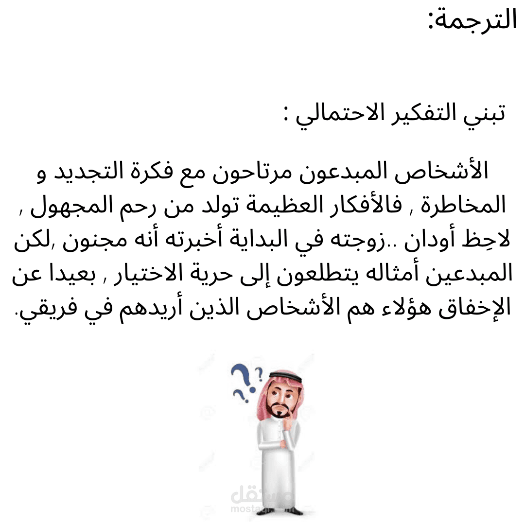 العمل عن ترجمةبطريقة احترافية منقحة لغويا لفقرة قصيرة عن التفكير الاحتمالي