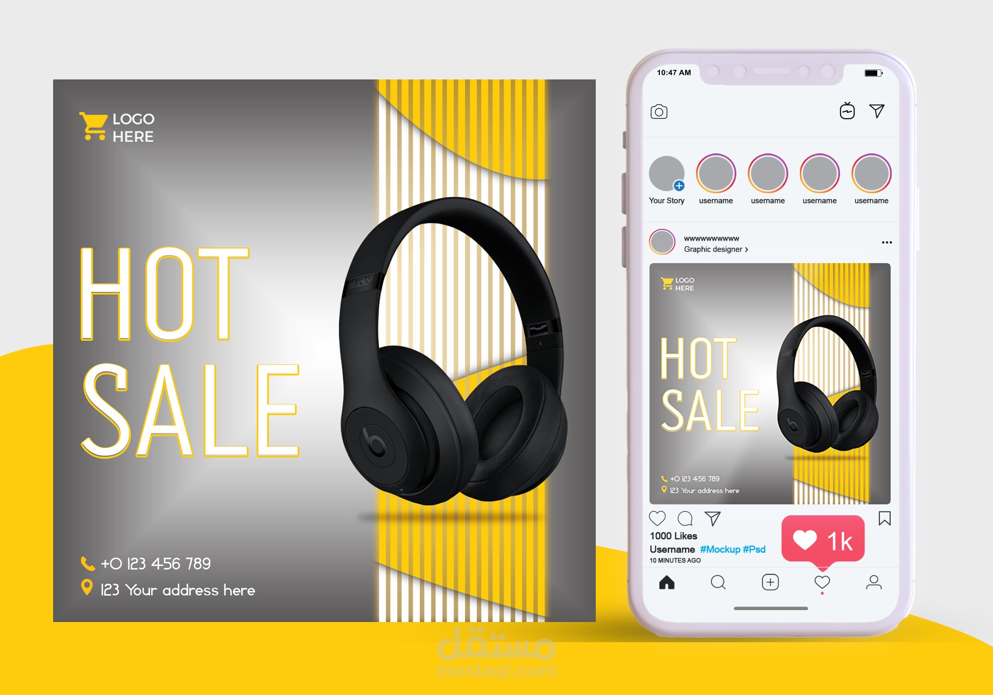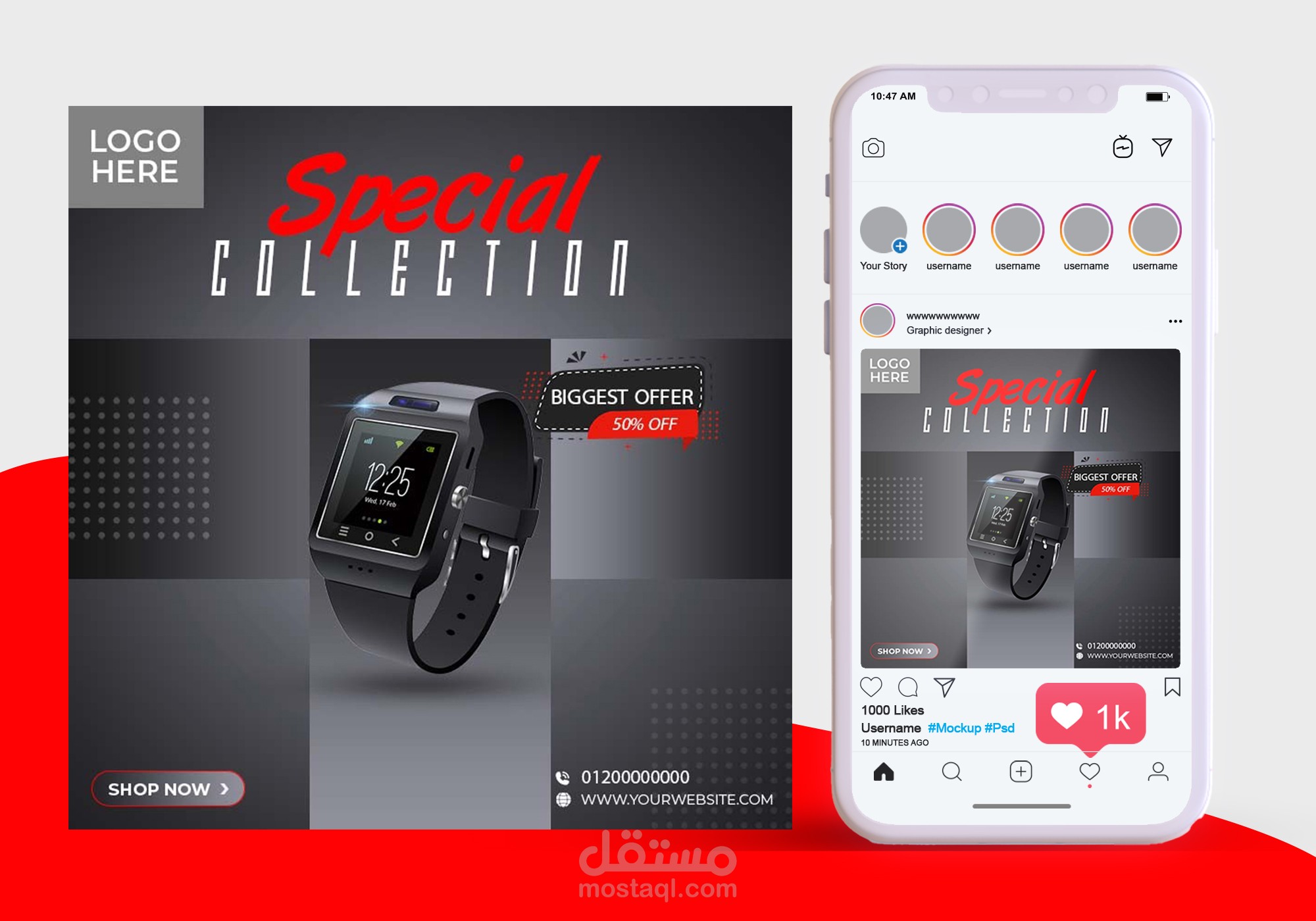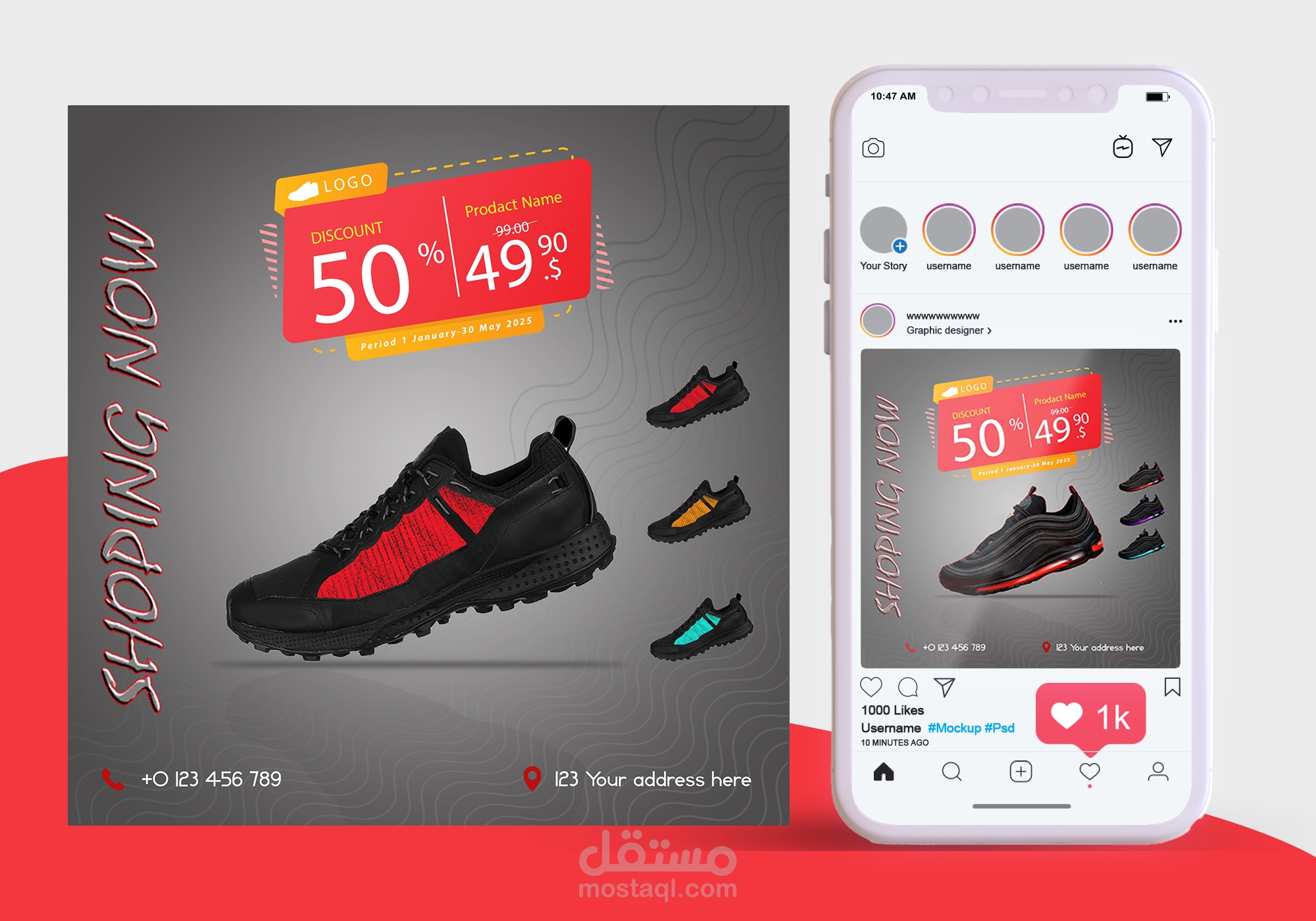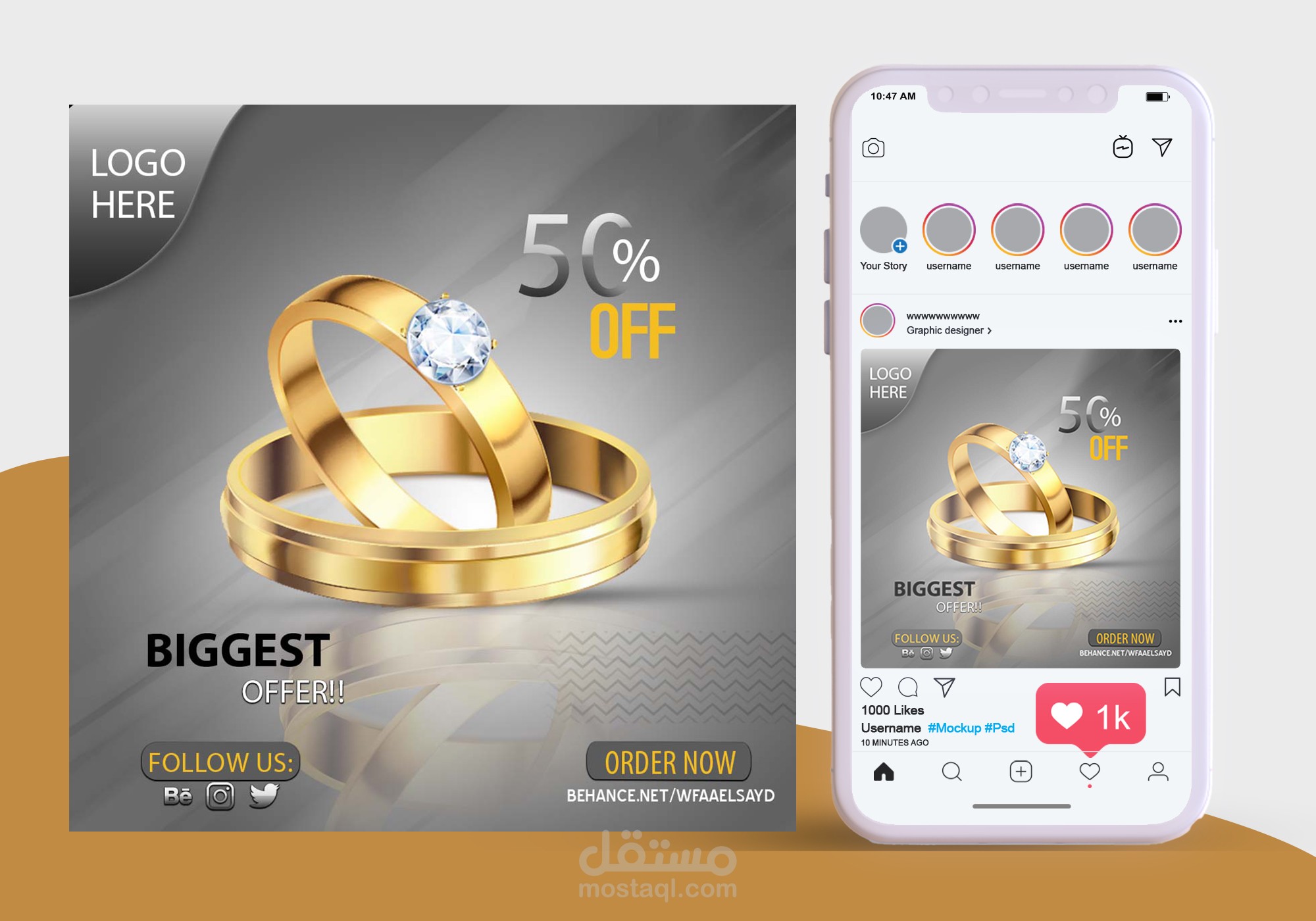 من اعمالى فى تصميم اعلانات السوشيال ميديا ,تصميم قالب سوشيال ميديا لعرض منتجات بحجم مربع 1200*1200 px يناسب العرض على مواقع التواصل الاجتماعى انستجرام و فيس بوك