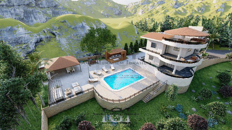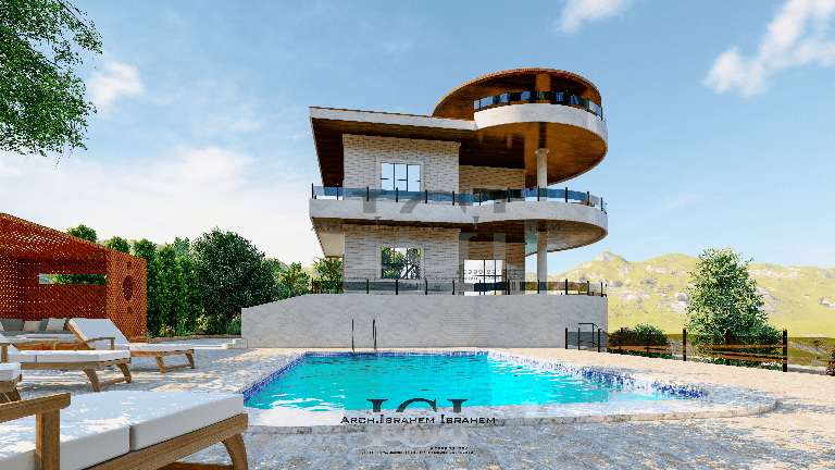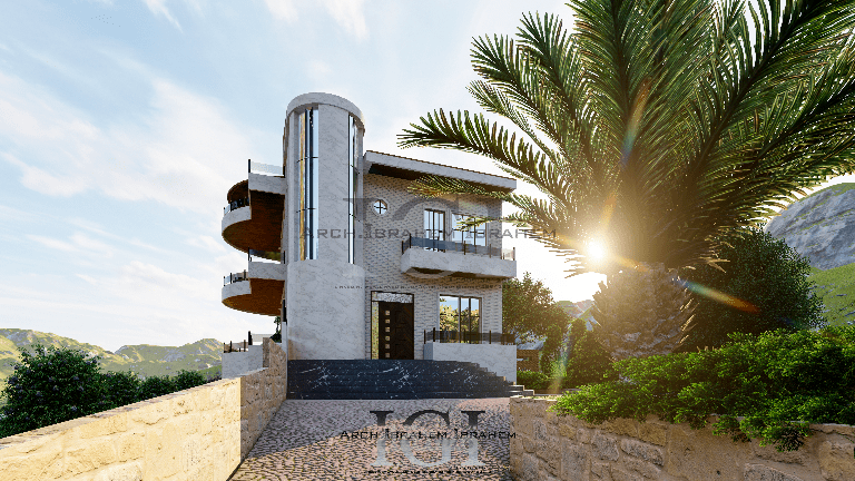 تصميم فيلا على سفح الجبل في سوريا تضمن العمل دراسة و تصميم المخططات المعمارية والتنفيذية و تصميم 3D و تصميم الواجهات و تنسيق الحدائق (لاندسكيب) والجلسات الخارجية.