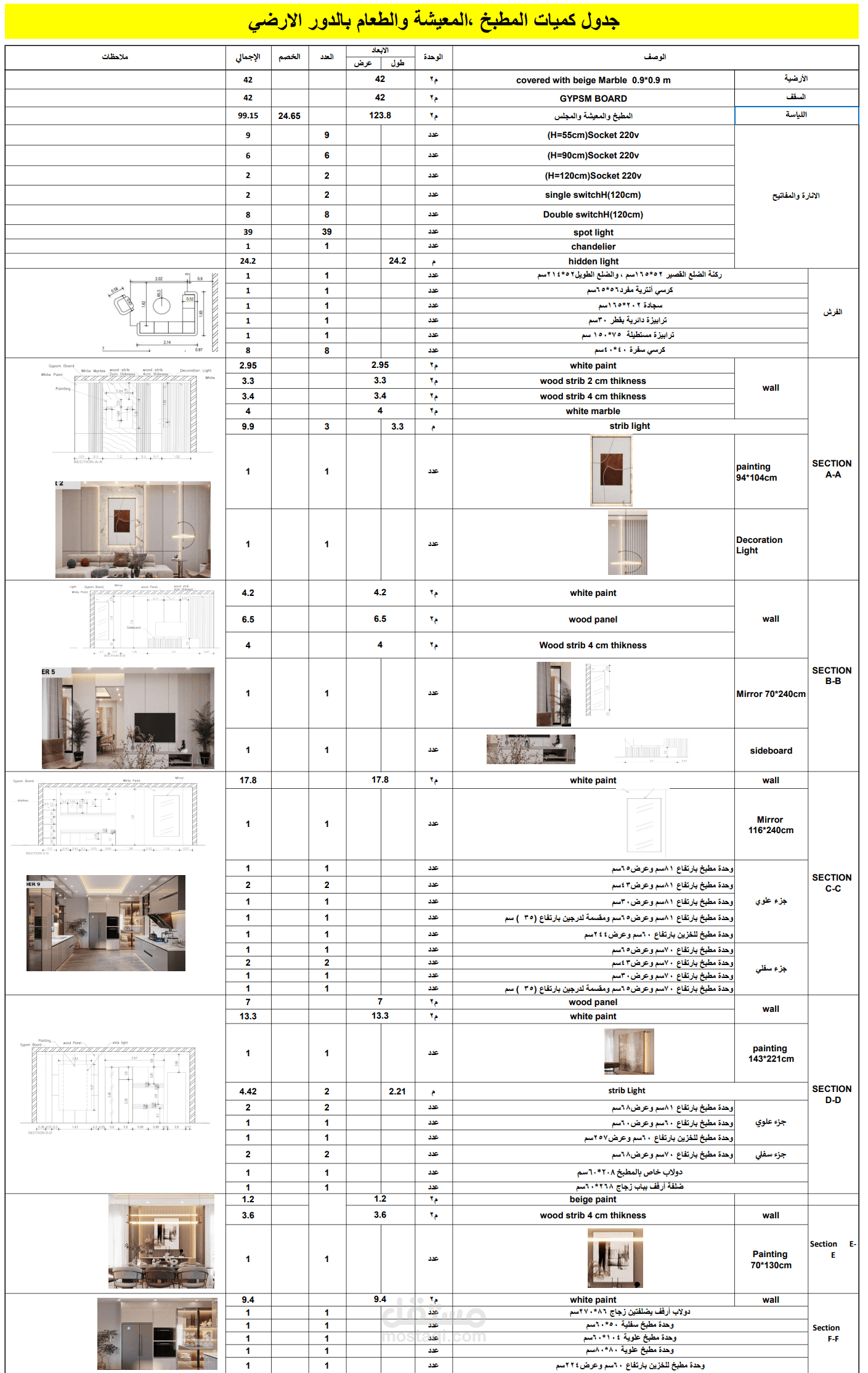 عمل حصر كامل لكافة التشطيبات والديكورات