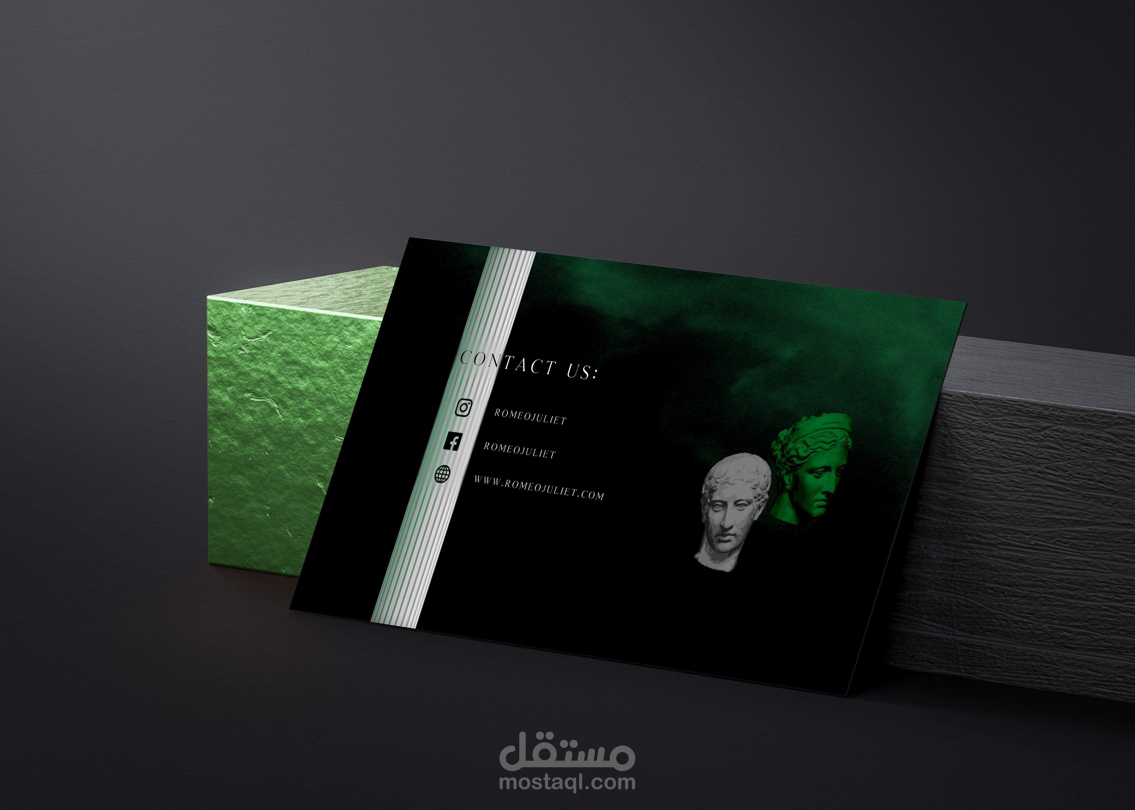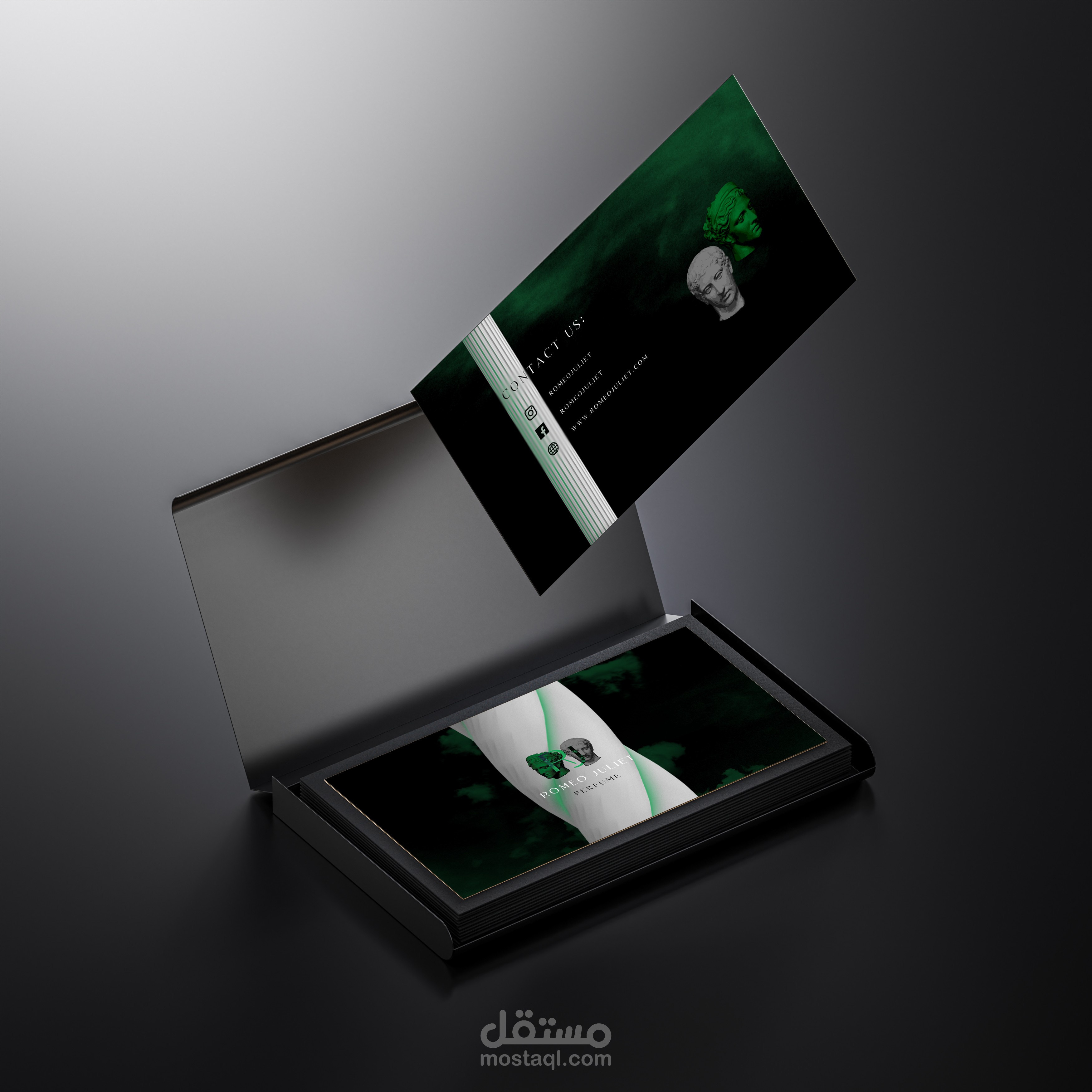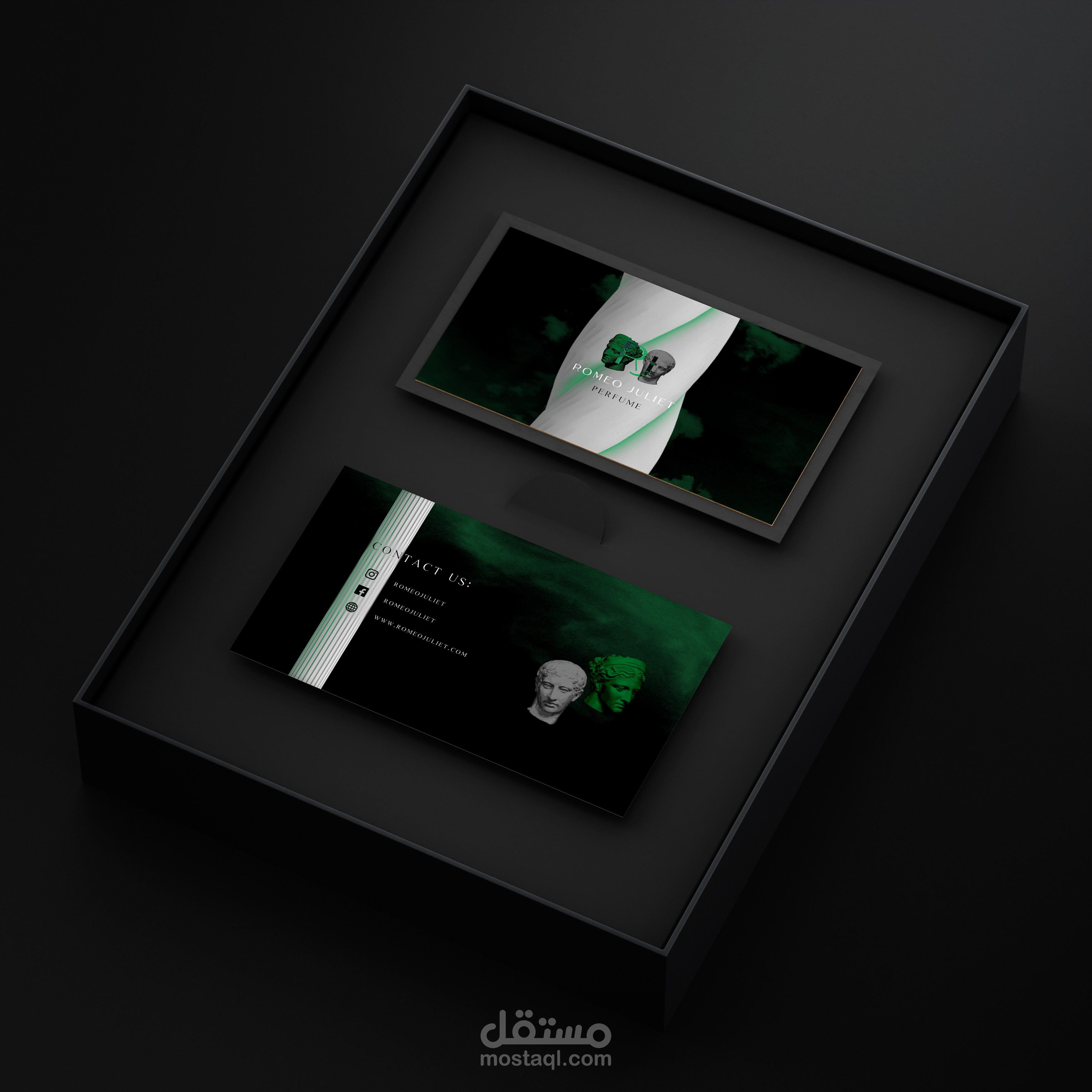 unique and unusual branding project for a perfume company that gives us A Greek feel denoting the company's heritage and unique color; Green which indicates the balance and calm that the fragrance imparts to those around it.