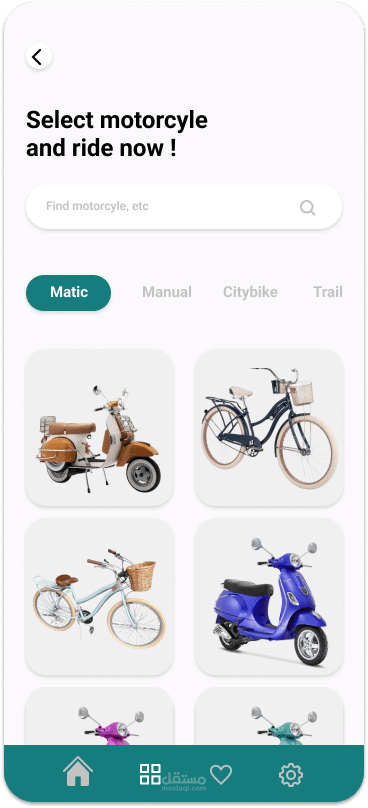 Modern UI design of Bike Rental Mobile Application