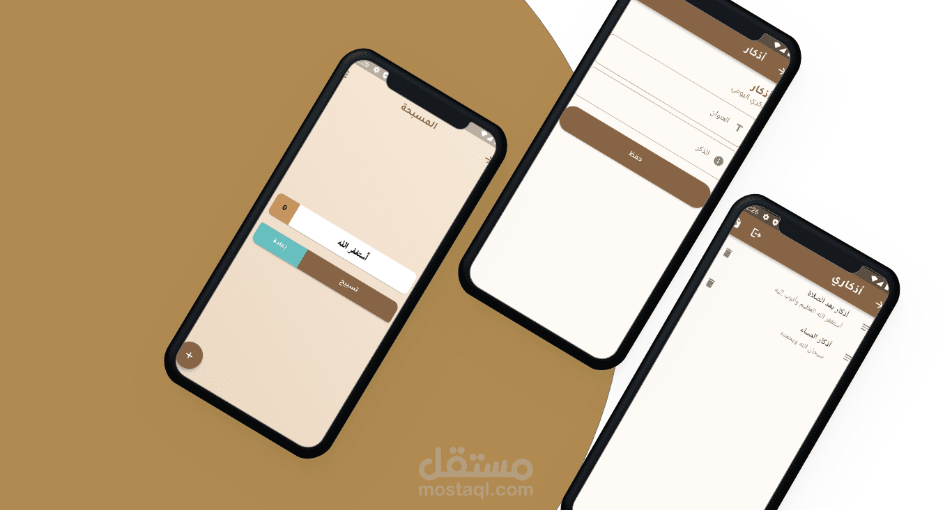 برمجة تطبيق أذكاري حيث يضم أذكار الصباح وأذكار المساء وأذكار ما بعد الصلاة ومسبحةالأذكار