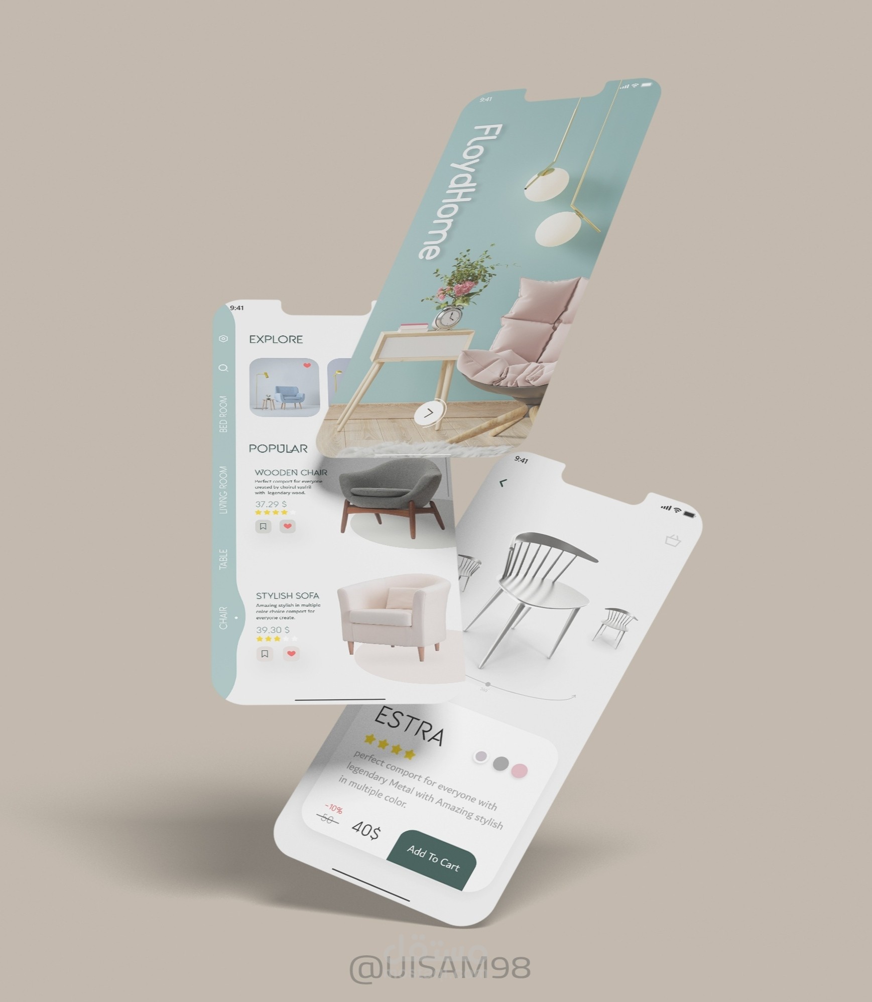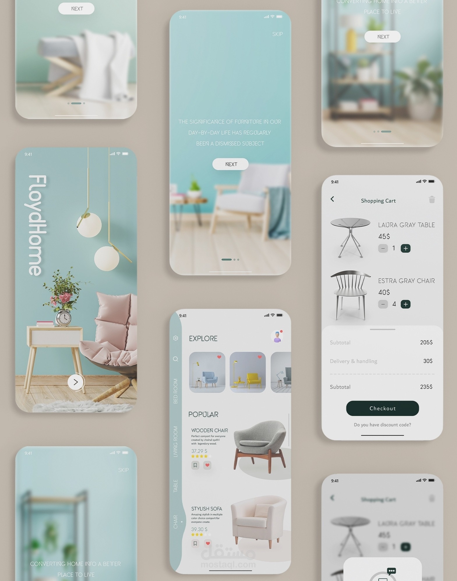 تصميم واجهات تطبيق متجر لبيع المفروشات Floyedhome