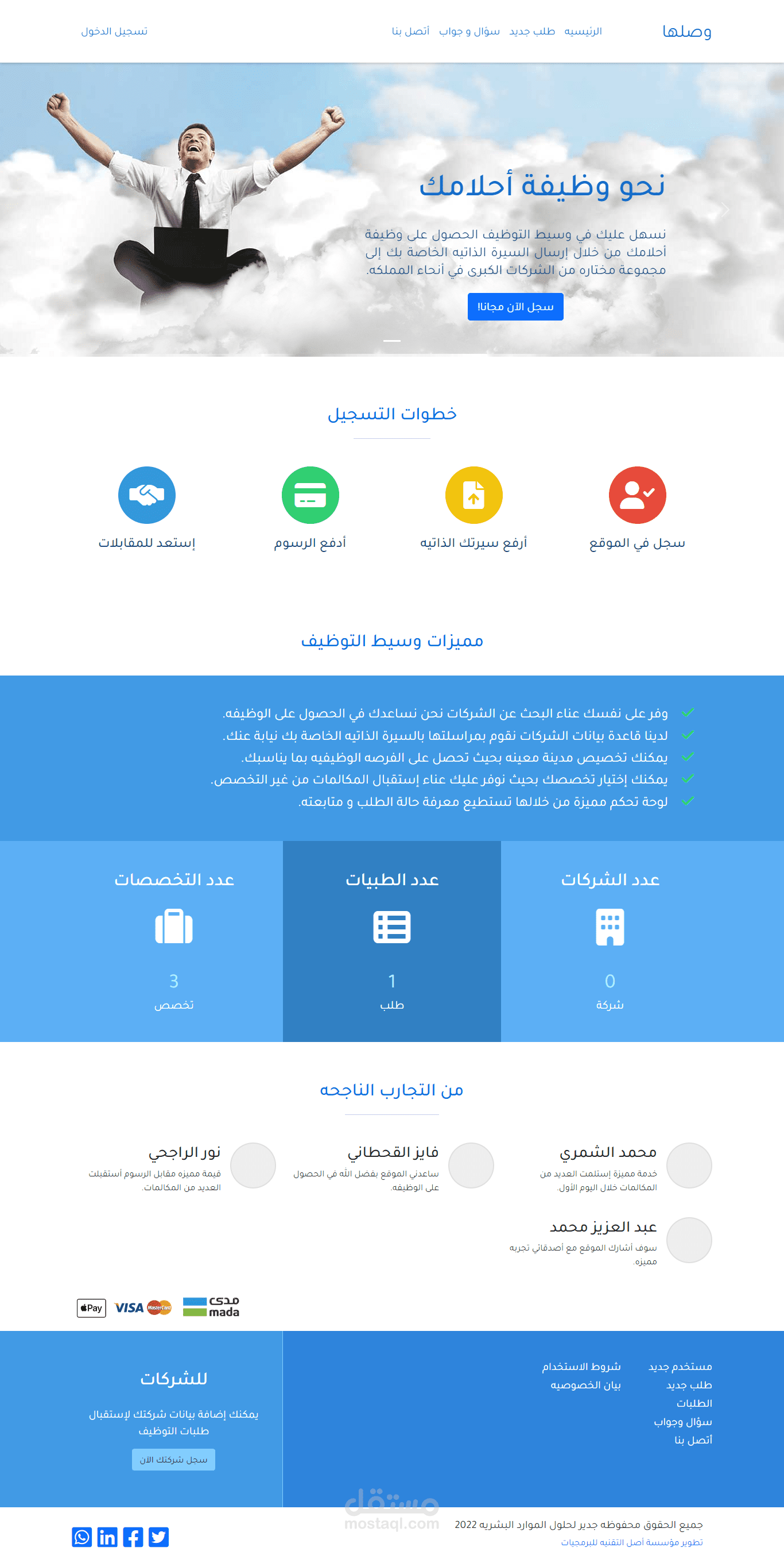 تصميم وتحليل وبرمجة موقع "وصلها" لإدارة التوظيف.