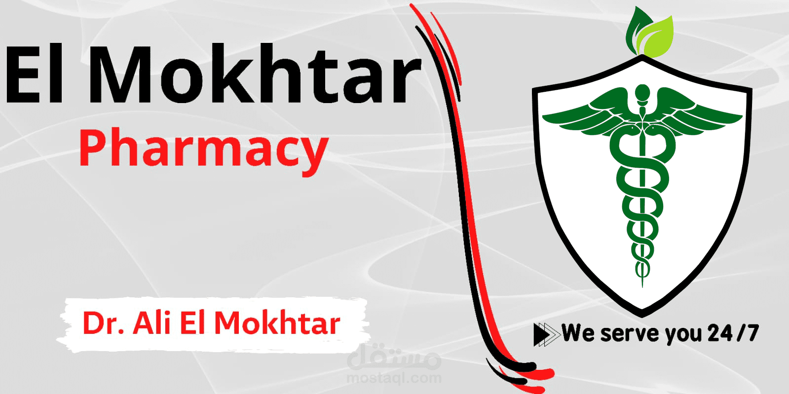 شعار صيدلية المختار للادوية الطبيعية والاعشاب، وتم تصميم البانر ايضا ليصبح كلافته اعلانية للصيدلية.