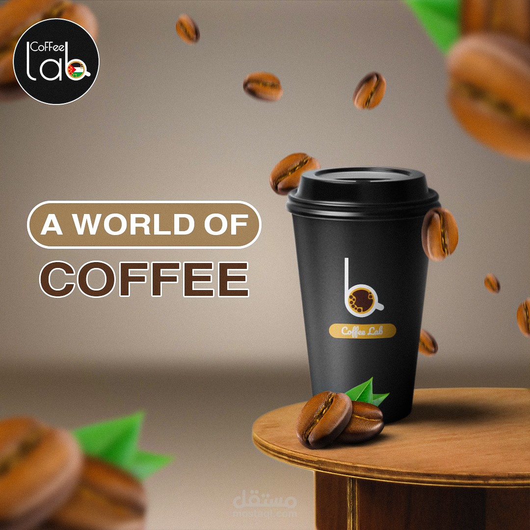 تصاميم دعائية لمحل Coffe Lab للمشروبات