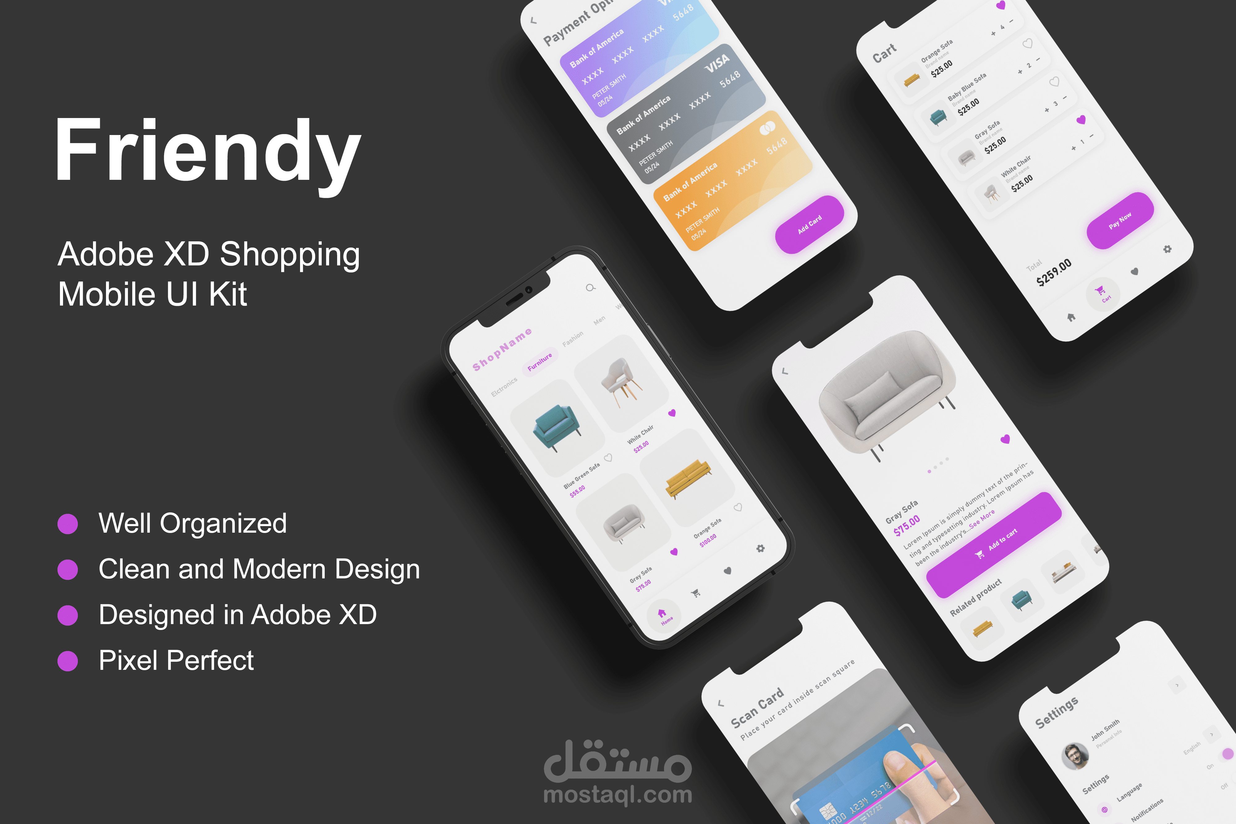 اكثر من 30 شاشات لتطبيق خاص بالمتاجر و التسوق بصورة سهلة و مريحة