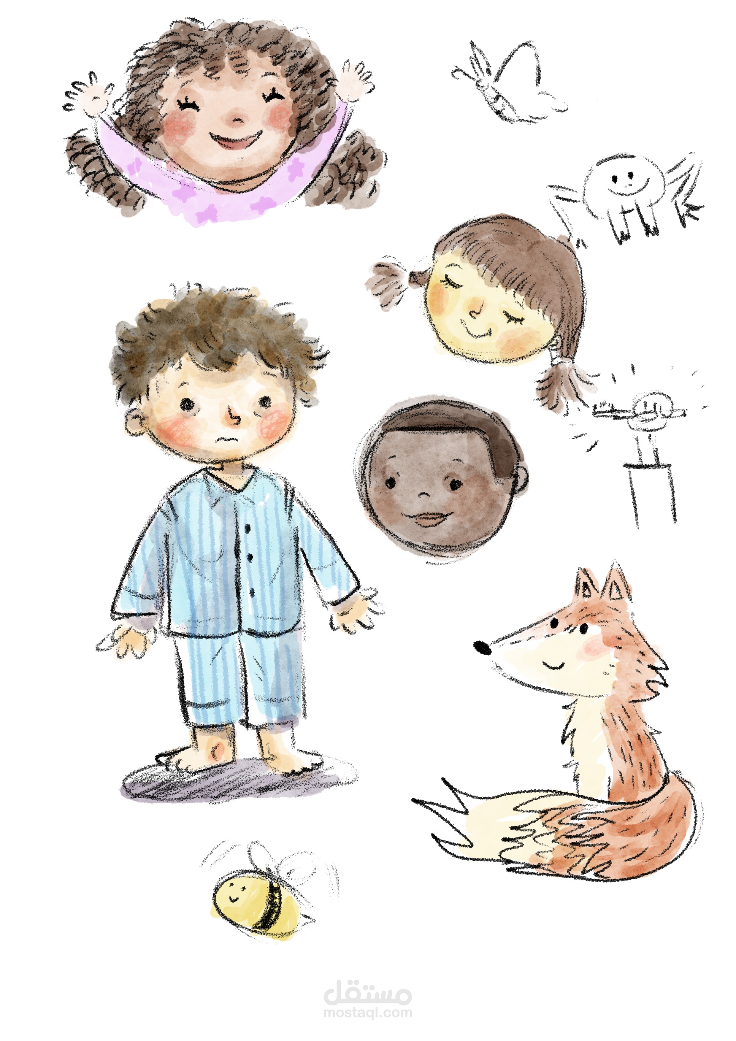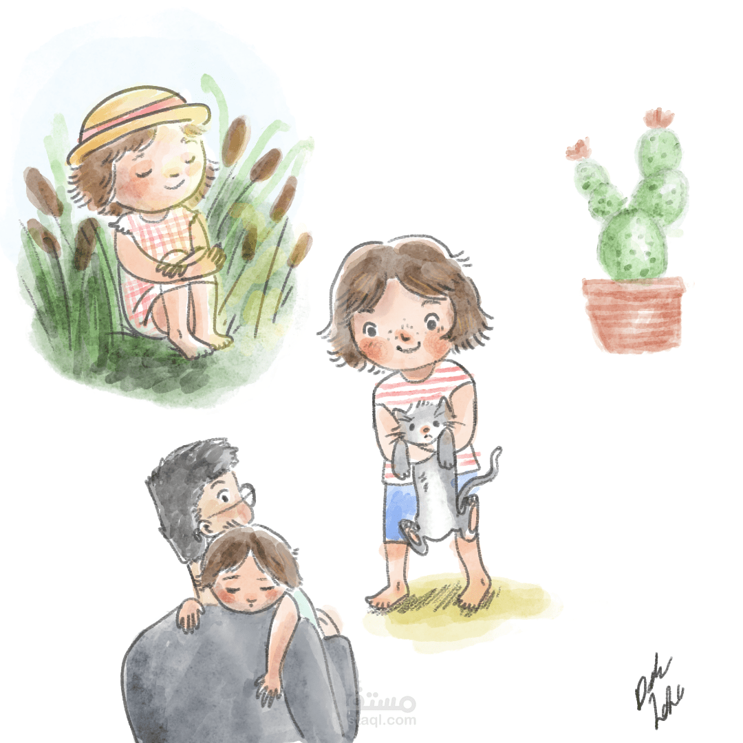 رسومات بأسلوب قصص الاطفال بالاضافة الى تصميم كتاب بأسلوب قصص الاطفال