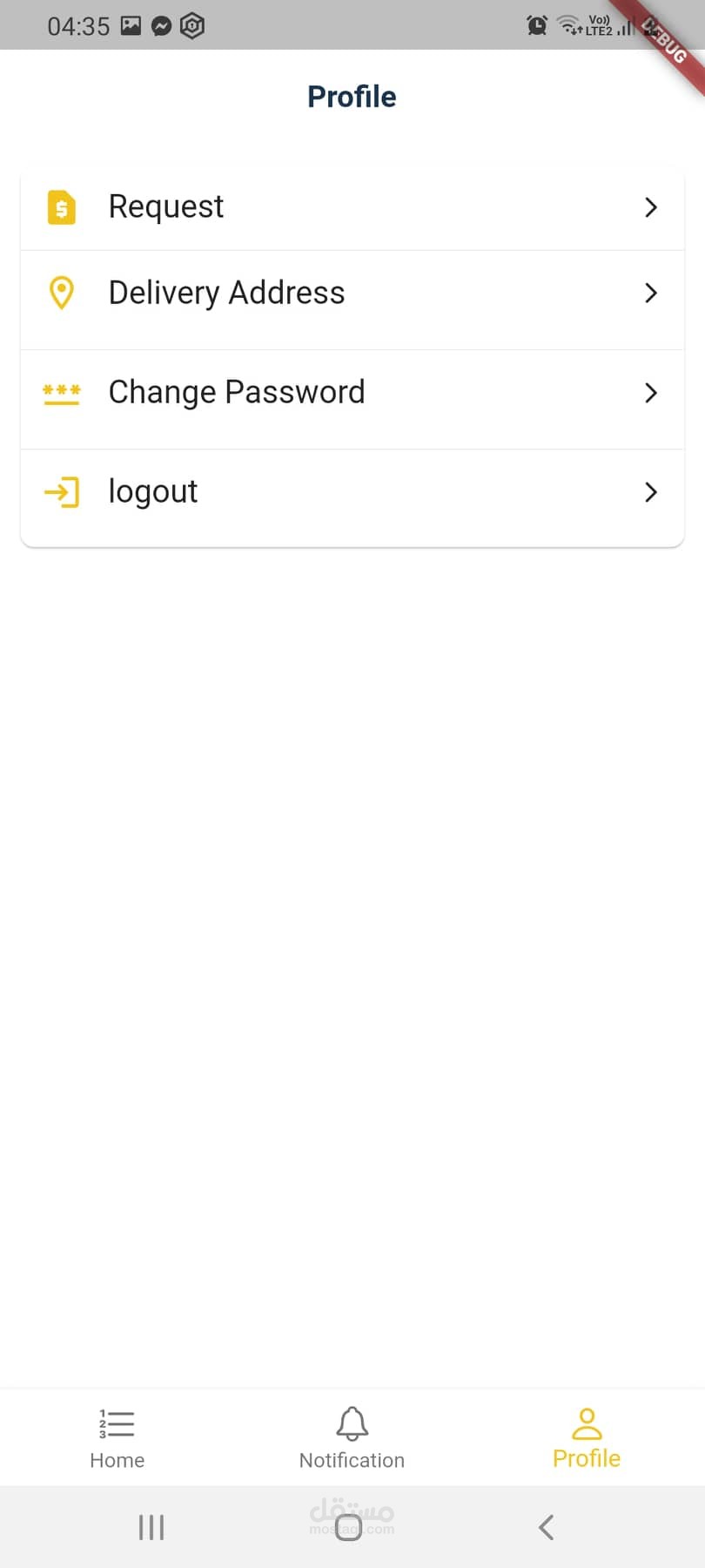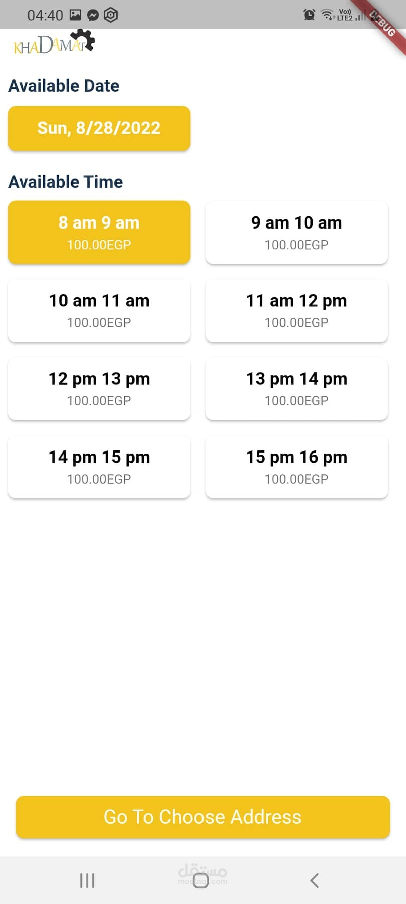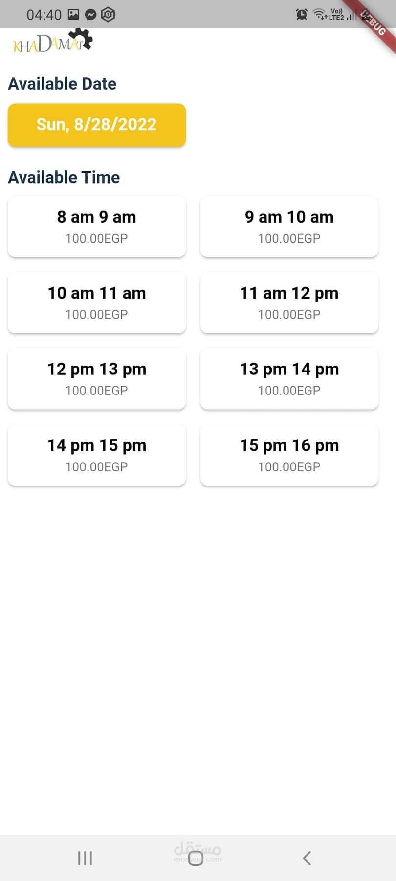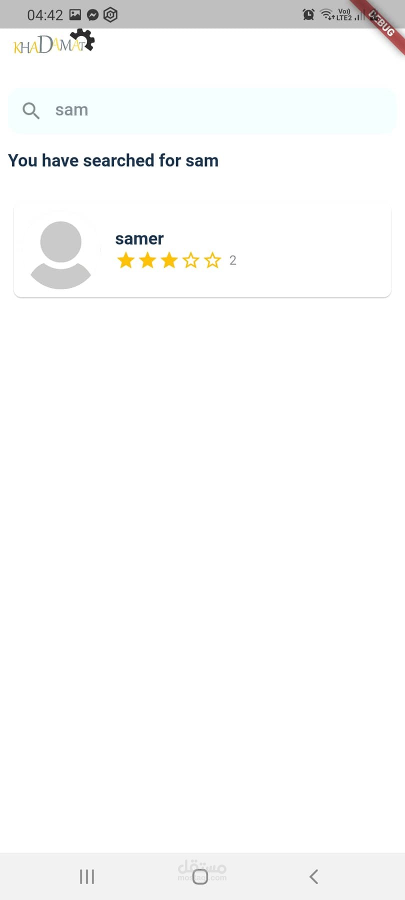 تطلبيق khadamat user هو تطبيق يتيح للمستخدم طلب عمالة لاحتياجة المنزلي تشمل جميع الاغراض فوز دخول العميل يختار القسم المناسب ويختار بعدها العامل تم عمل التطبيق ب flutter و backend ب laravel ولوحة التحكم vue