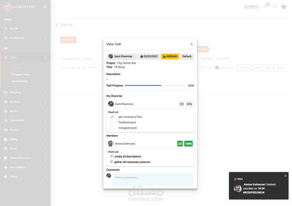 هو أحد تطبيقات الويب الداخلية التي قمت بإنشائها من البداية مثل أساليب عمل فريدة من نوعها لوكالة Alacom.