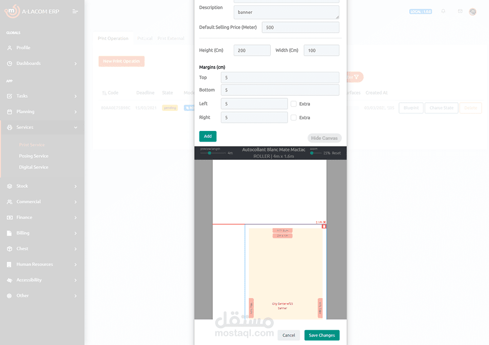 Visualised Digital Layout Canvas for Roller Prints.