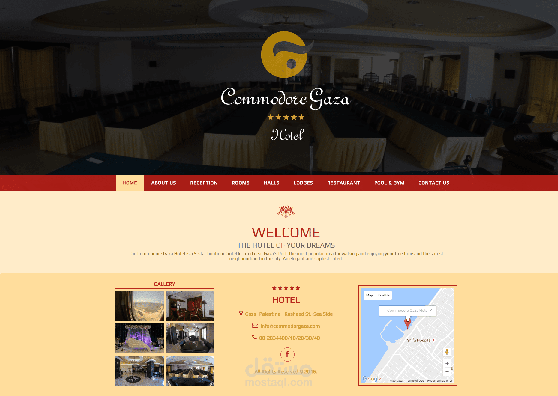 موقع يعرض تفاصيل الفندق من الغرف و القاعات و الشقق الفندقية و المطعم وصور لكل قسم ... ومصمم على احدث تقنيات الويب الحديثة ومتوافق مع جميع شاشات العرض
