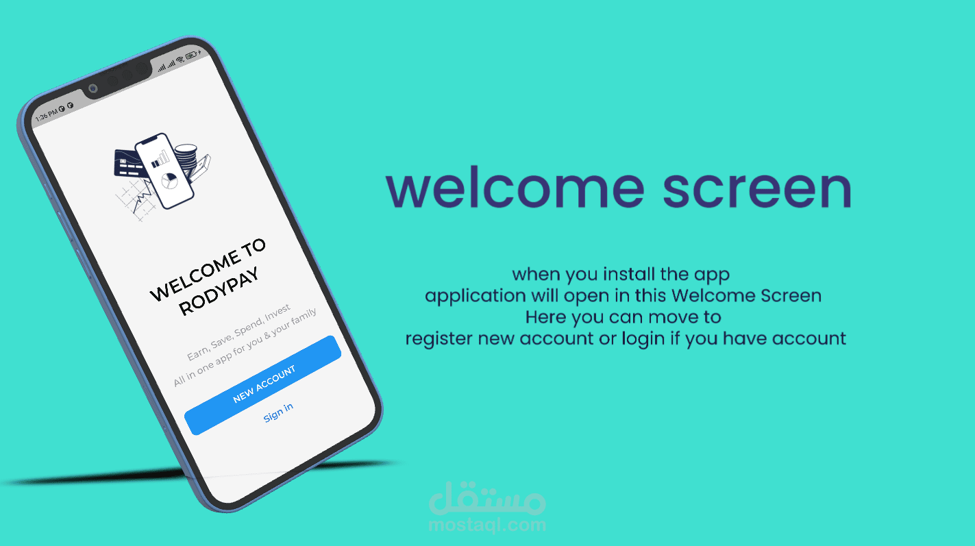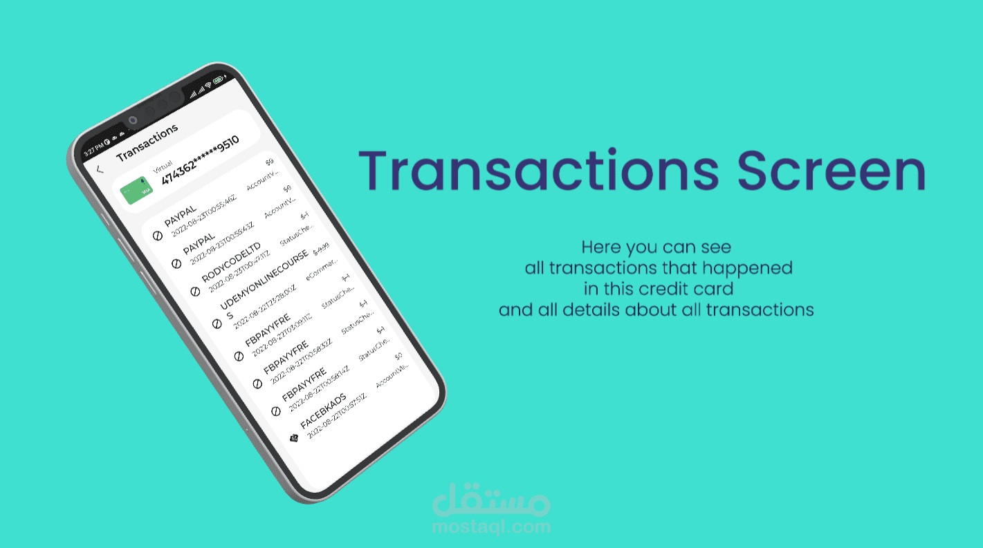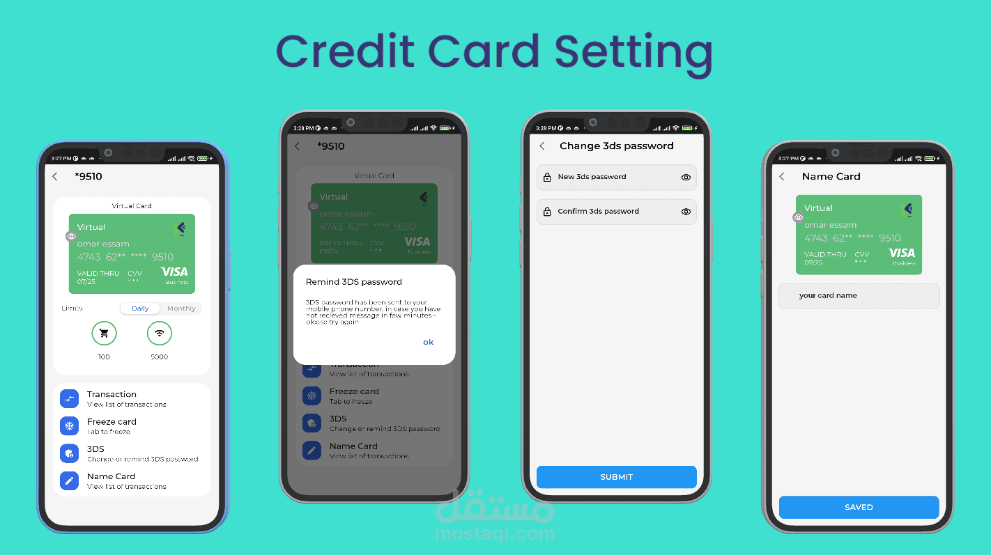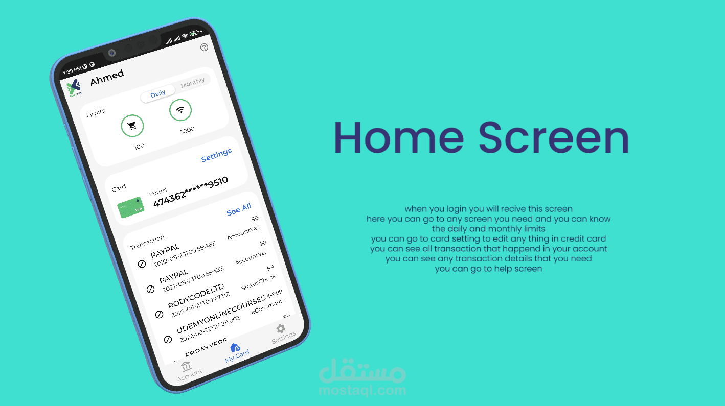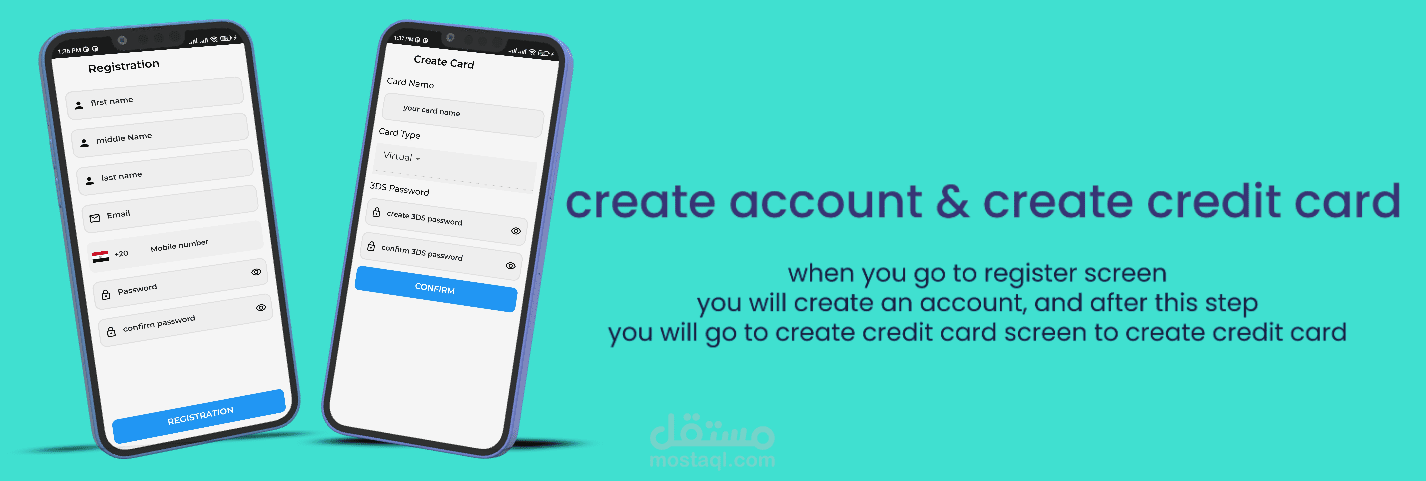 تطبيق بنك إلكتروني يستطيع المستخدم ان يفتح حساب مع البنك ويقوم بإنشاء credit card له مع البنك