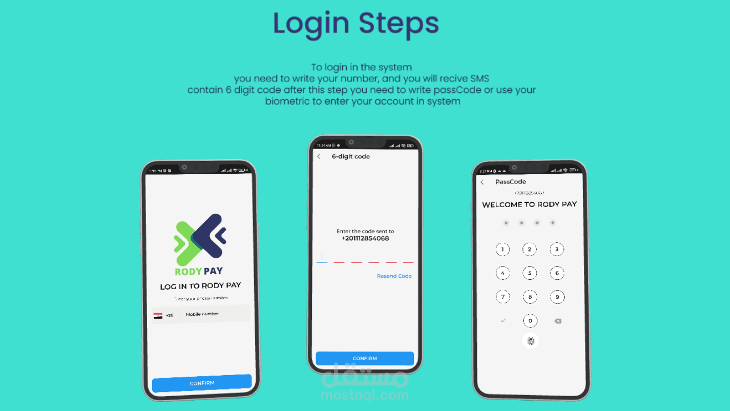 الرقم الذي سجل بيه من ثم سيتم ارسال OTP علي هذا الرقم ومن ثم ادخال PassCode الخاص من العميل ويستطيع العميل من خلال صفحة