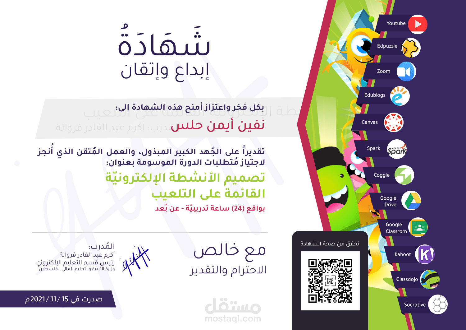 لدي مهارة عالية على استخدام برمجيات وأدوات التلعيب المختلفة ودمجها في الدورات والحصص التعليمية، وقمت بإعداد العديد من الألعاب باستخدام مواقع مختلفة، مثل: Kahoot!, Classdojo, EduPuzzel, ...
