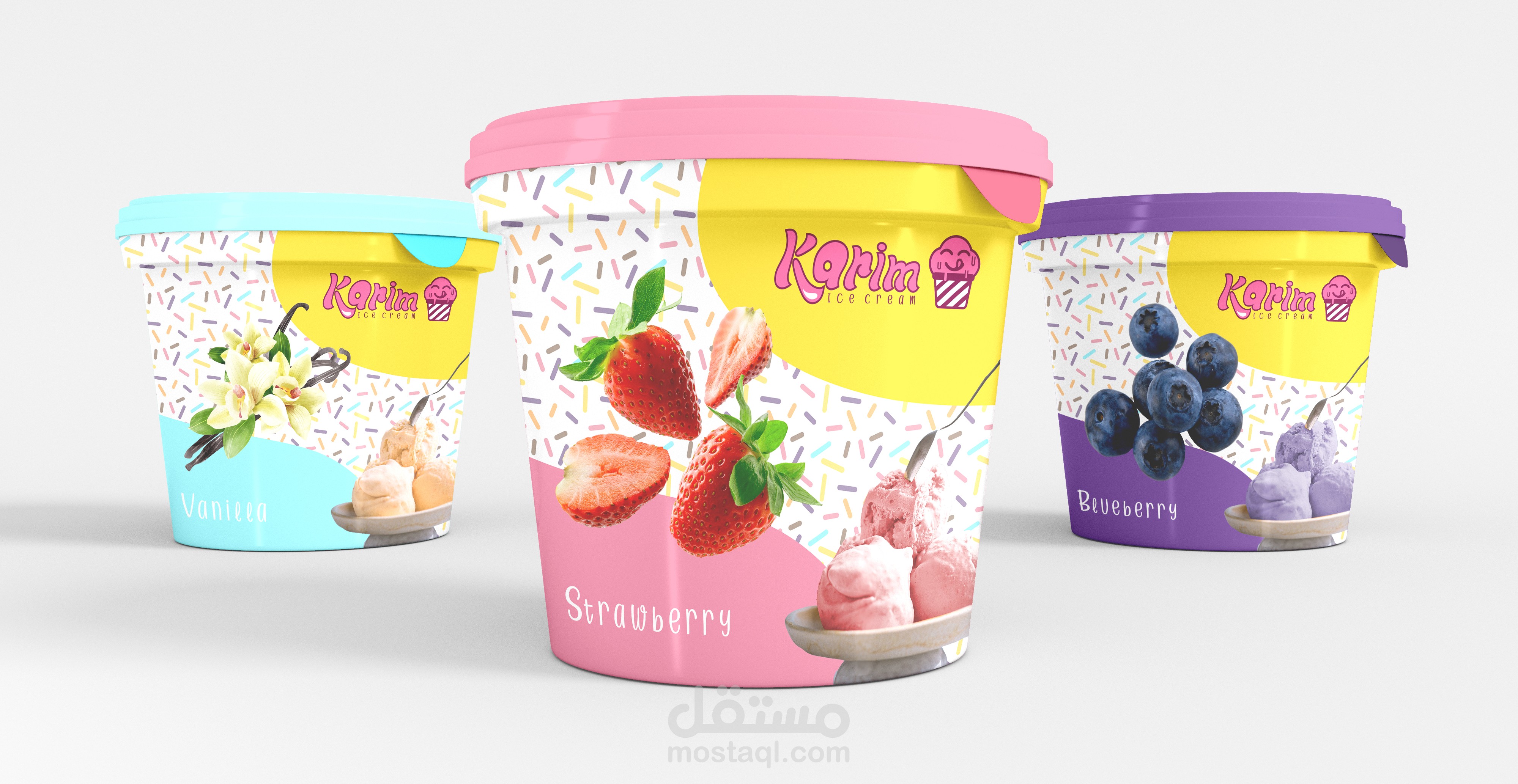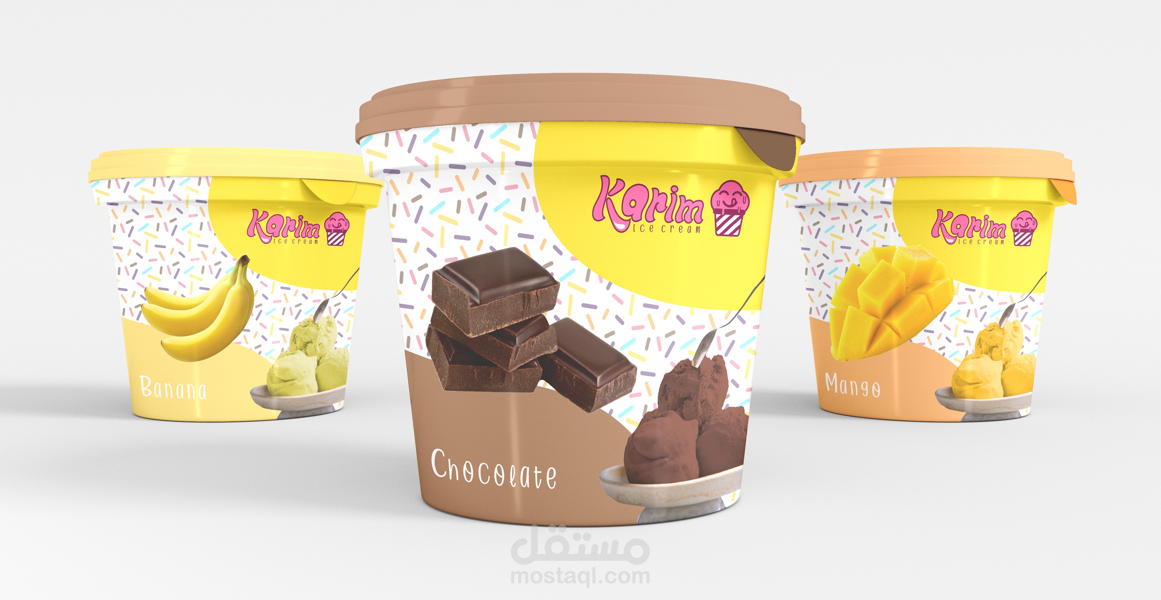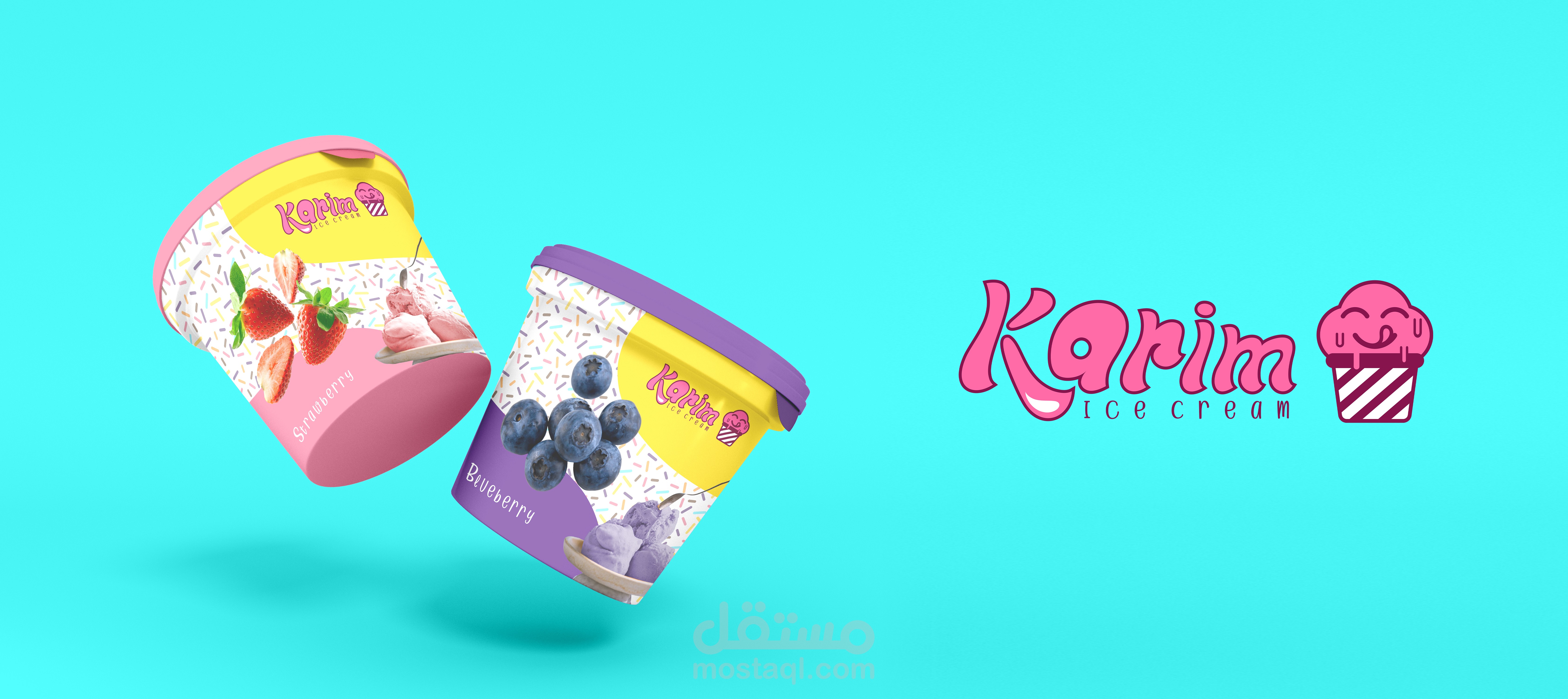 تمصميم لوجو وبراند ايدنتيتى كامل karim ice cream