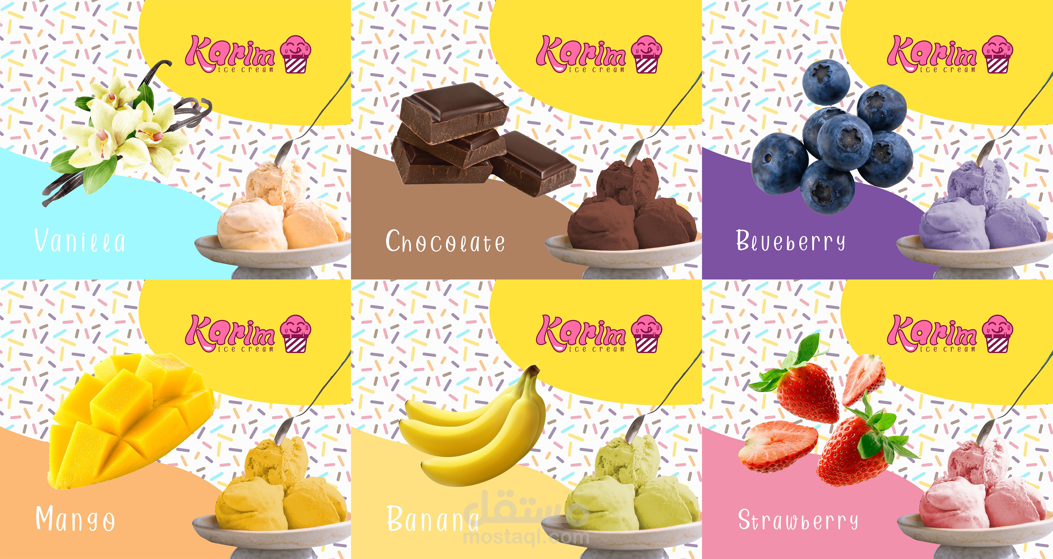 Karim ice cream Brand identity - كريم ايس كريم براند