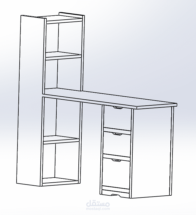 في هذا المشروع قمت بتحويل المشروع (المكتب) الموجود في الصورة الى تصميم ثلاثي الابعاد على برنامج ال SolidWorks