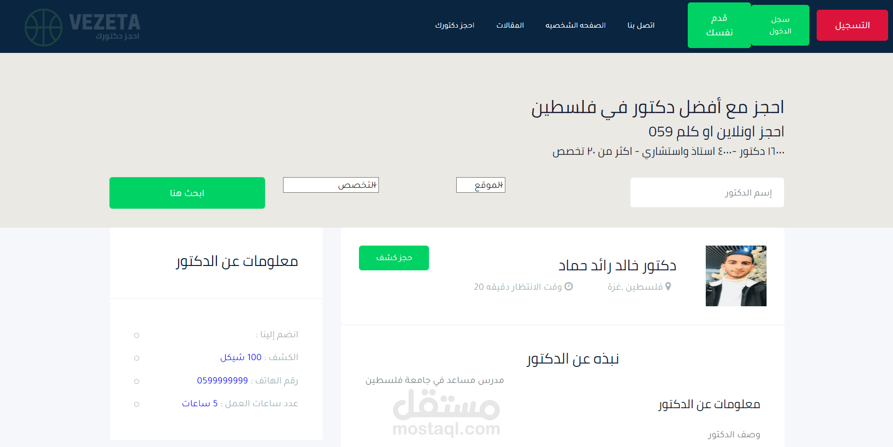 العديد من المميزات التواصل وصفحة الدكتور والمكان وشكل العيادة والخدمة الذي يقدمها والحجز والموعد