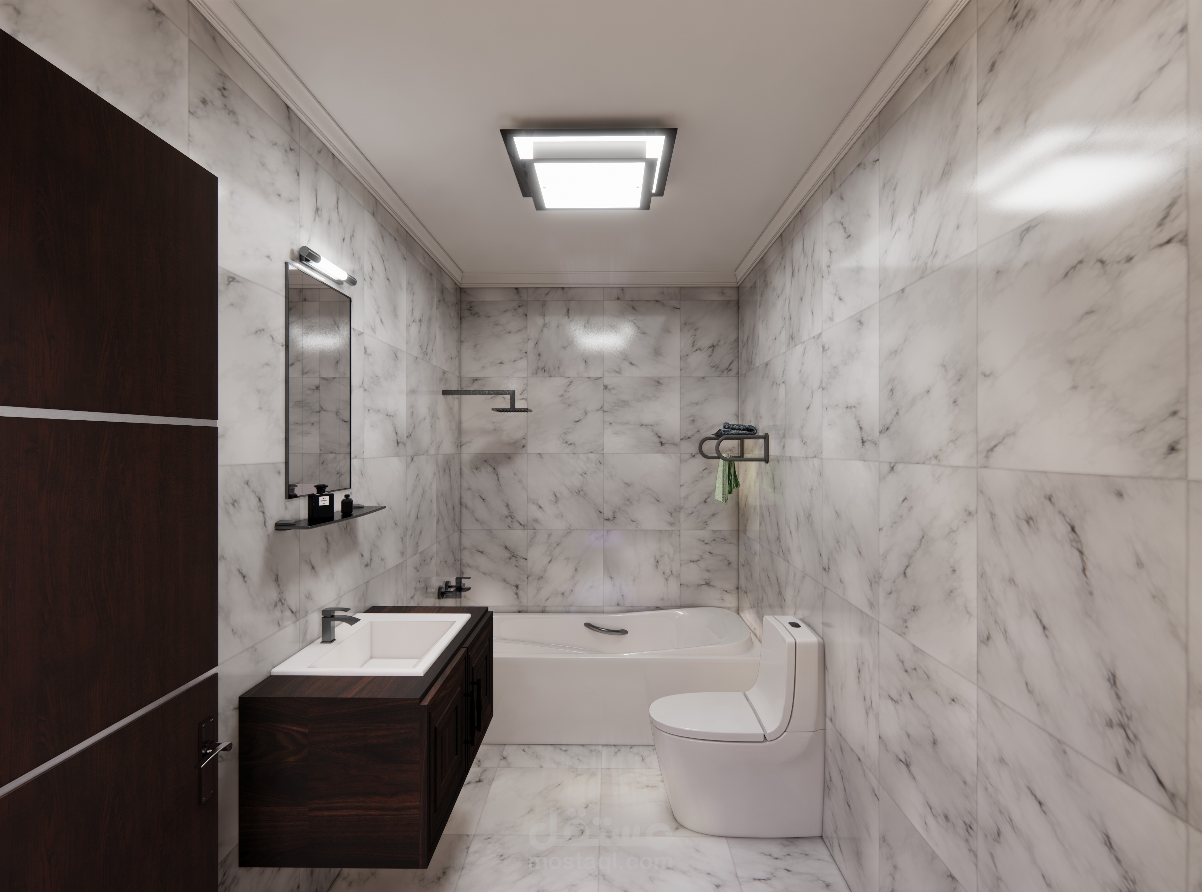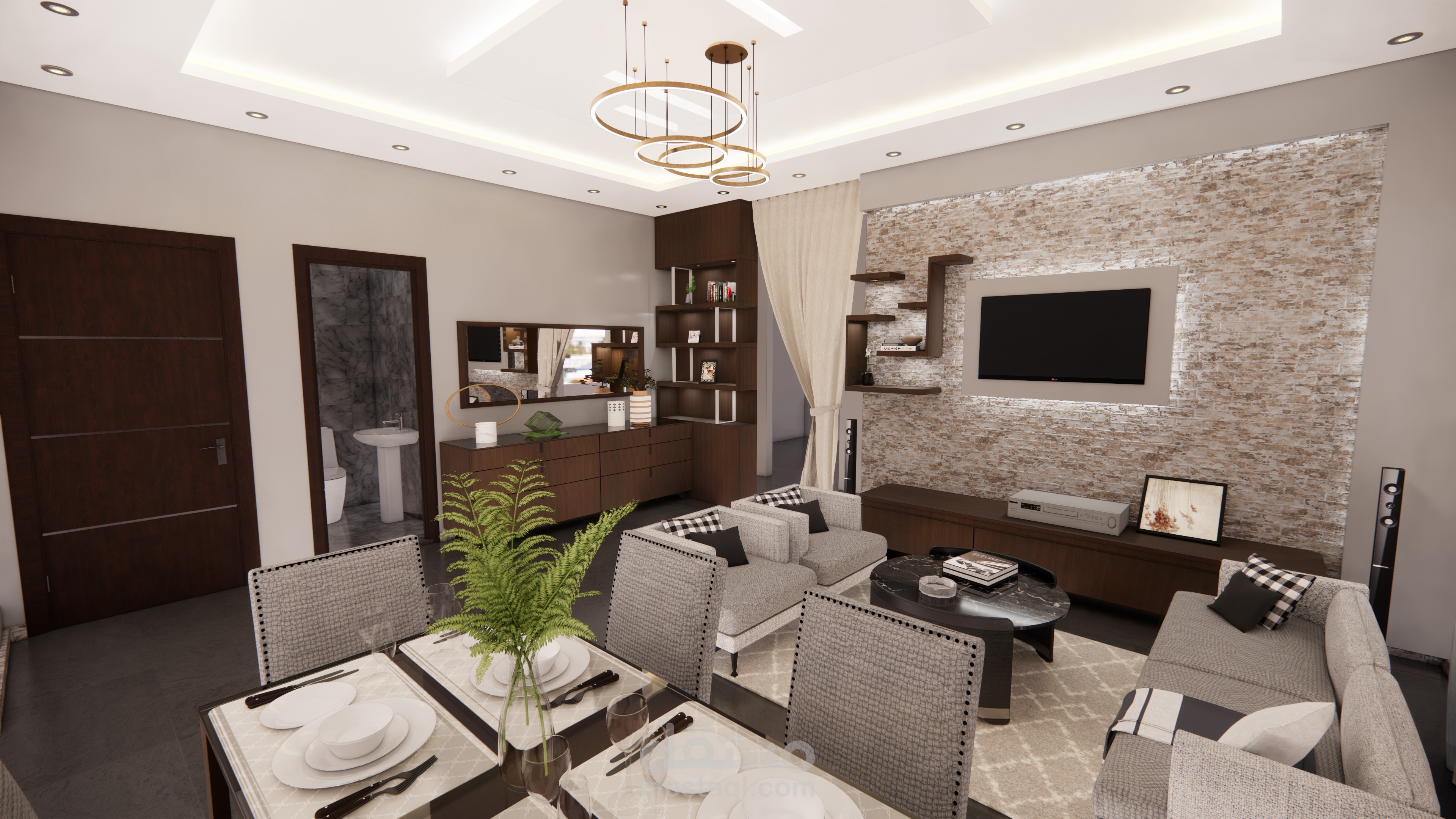 تصميم داخلى لريسبشن شقة معه حمام.