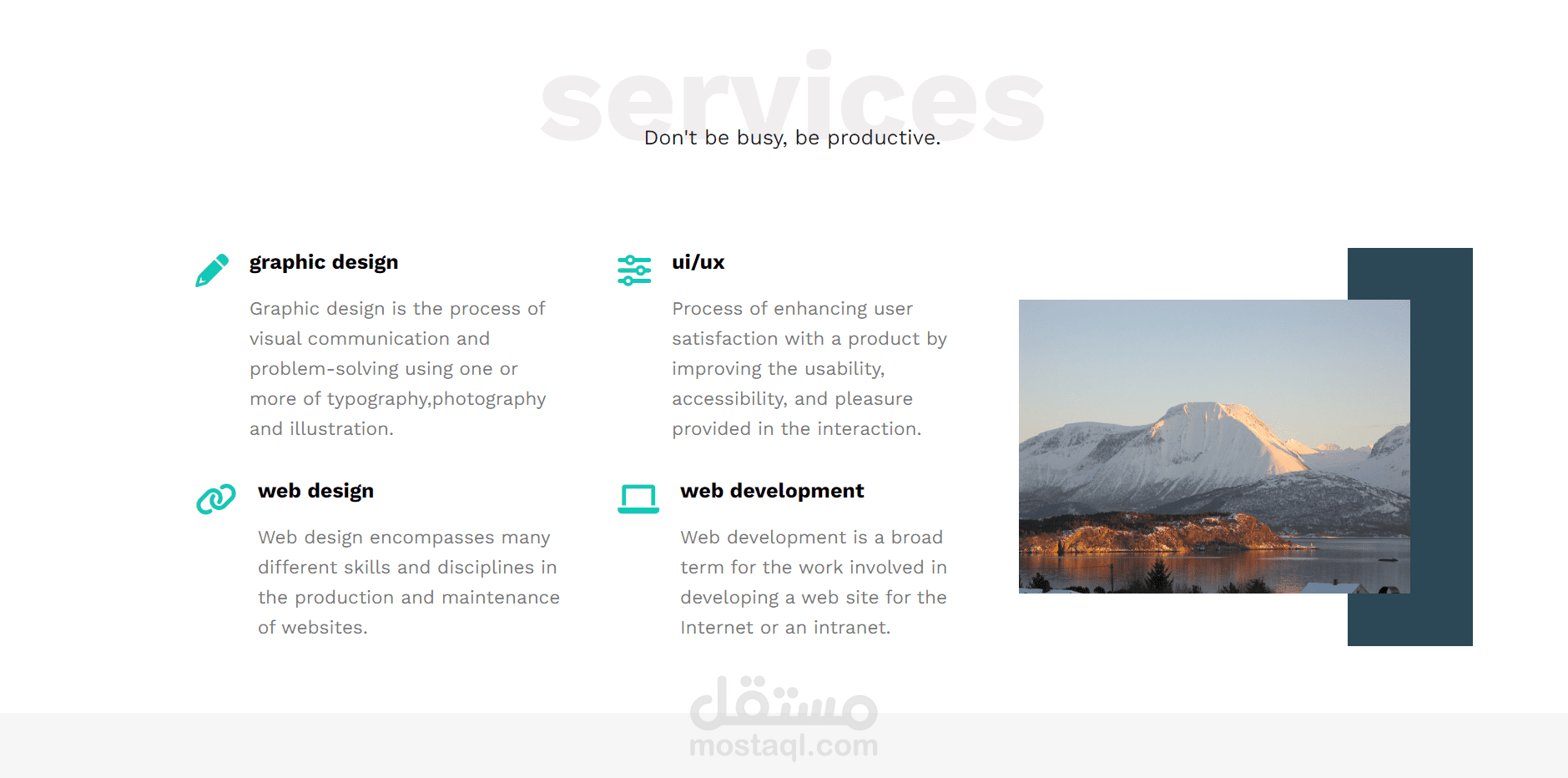 اللغات المستخدمة: html, html5, css3, bootstrap, media query.