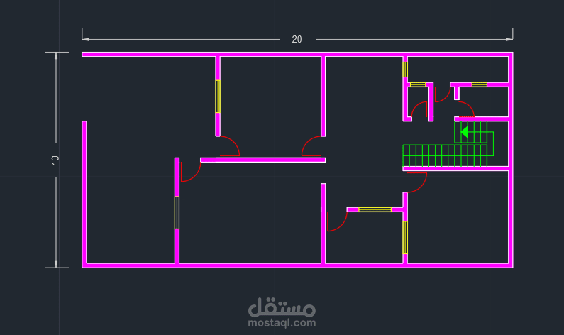 تم تصميم خارطة منزل واجهة 10 متر وعمق 20، باستخدام برنامج الاوتوكاد، بالإضافة إلى مراعاة تنفيذ التصميم باستخدام Layers, Dimensions, Blocks, hatch وإظهارها، وقد تم إخراج التصميم وتجهيزه للطباعة، بمقياس الرسم المطلوب.