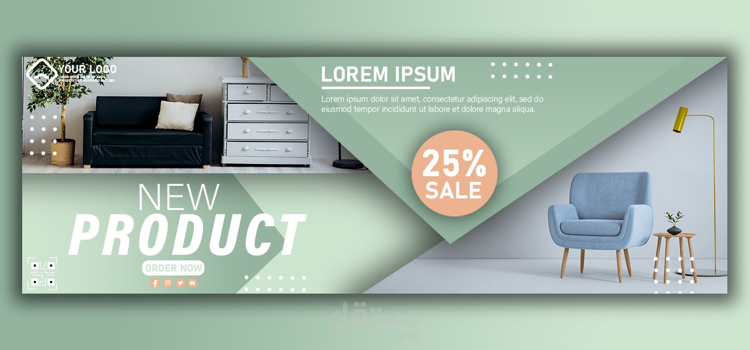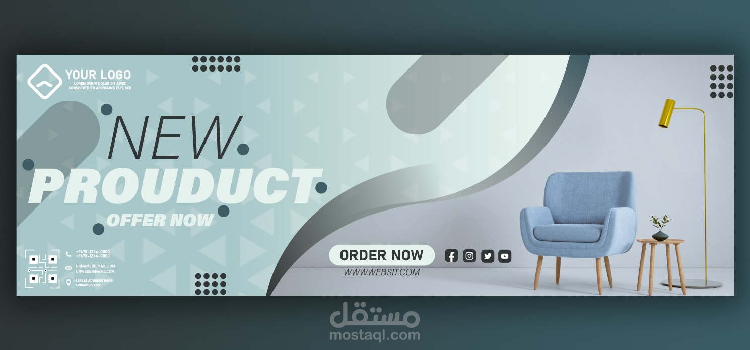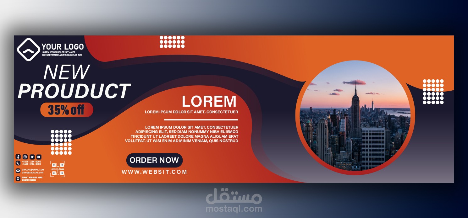 تصميم لافتة على Facebook باستخدام Photoshop و Illustrator ، وهو تصميم يحتوي فقط على بعض الكلمات والصور الخاصة بالصفحة المشار إليها في هذه الصفحة.