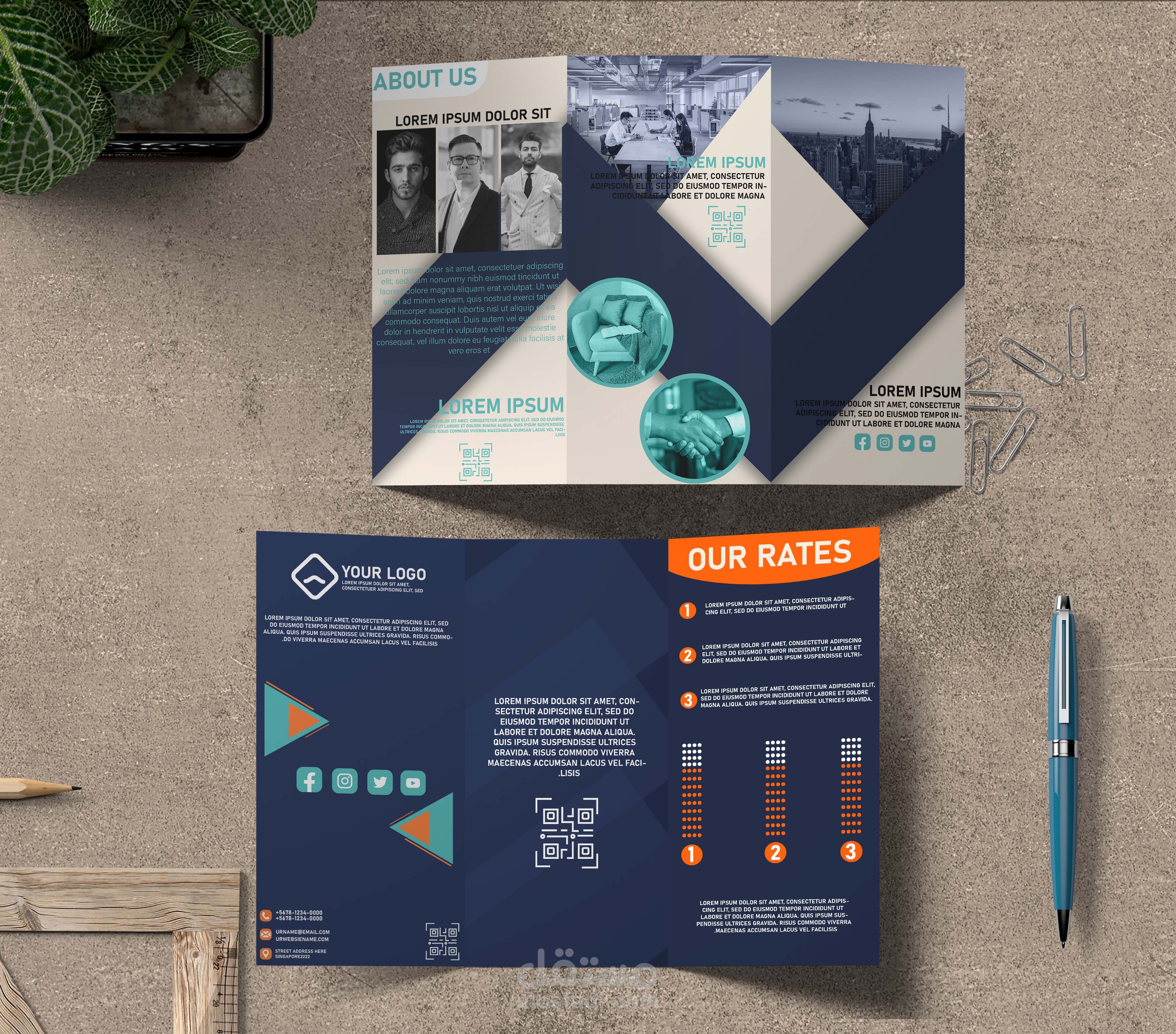 صمم كتيبًا تجاريًا ، مصممًا على Photoshop و Illustrator ، تصميمات تحتوي على سعر الشركة وبعض الصور ، بالطبع ، صورة اصطناعية ، وليس لشركات حقيقية ، فقط شاشة عرض.