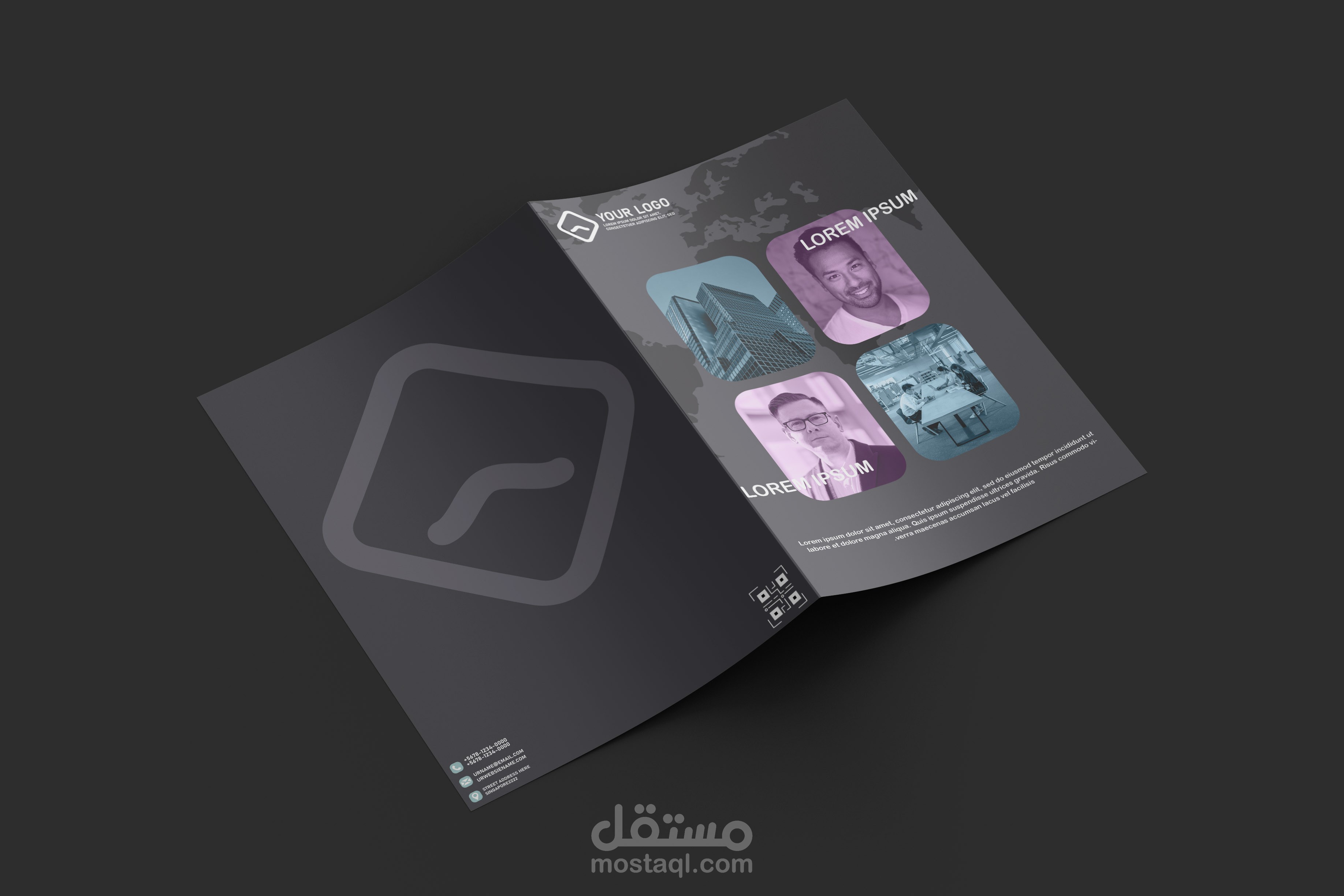 تم تصميم بعض تصميمات المجلدات على برامج Adobe Photoshop و Illustrator ، فهي لا تحتوي على العديد من الأشكال ، فقط بعض البيانات من الجهة الخلفية والأمامية لشعار الشركة والصور المفقودة