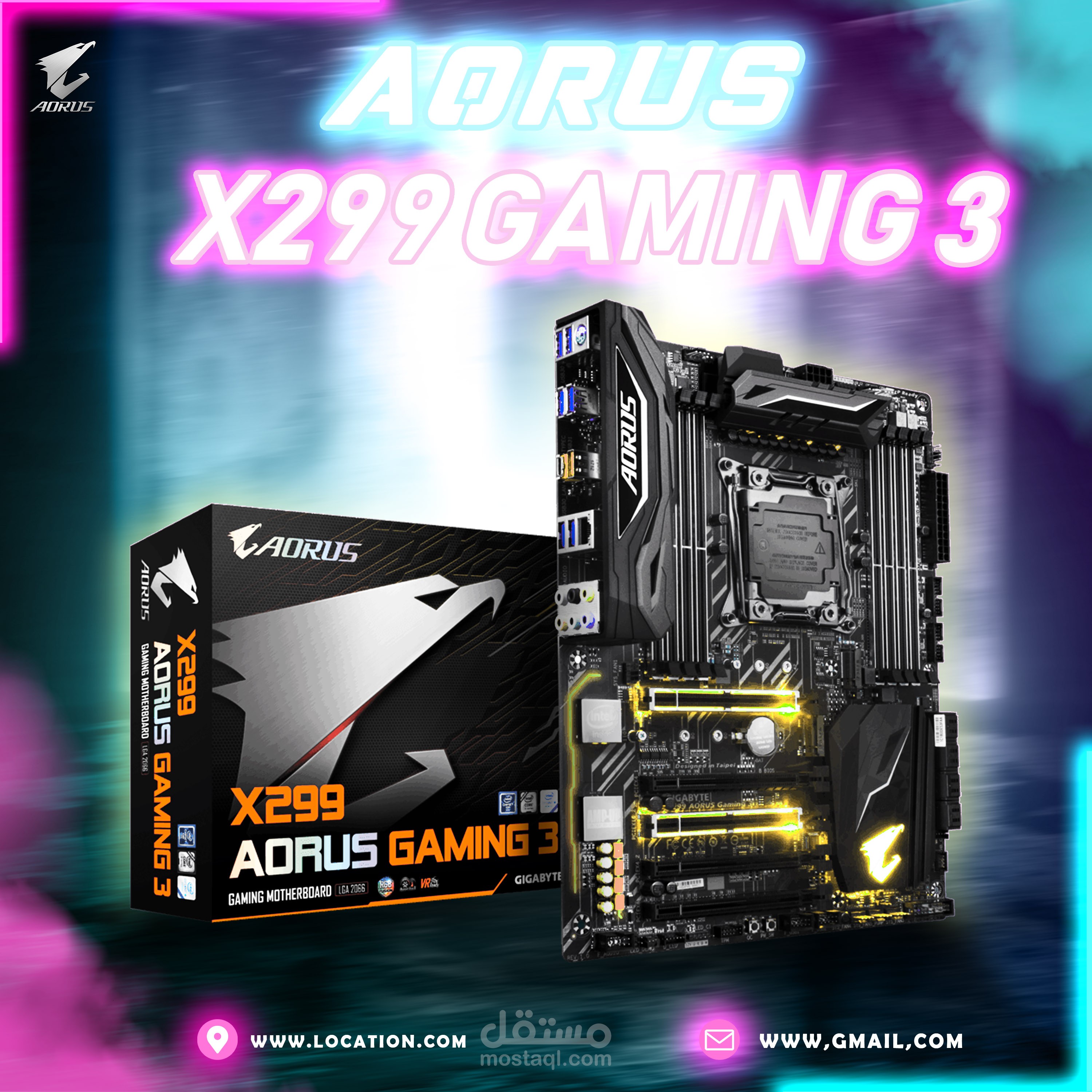 تصميم مشروع لجهاز كمبيوتر حديث. تم استخدام الخلفية من المواقع المعروفة ، واستخدمت ألوان النيون لإعطاء التصاميم بريقًا ساطعًا