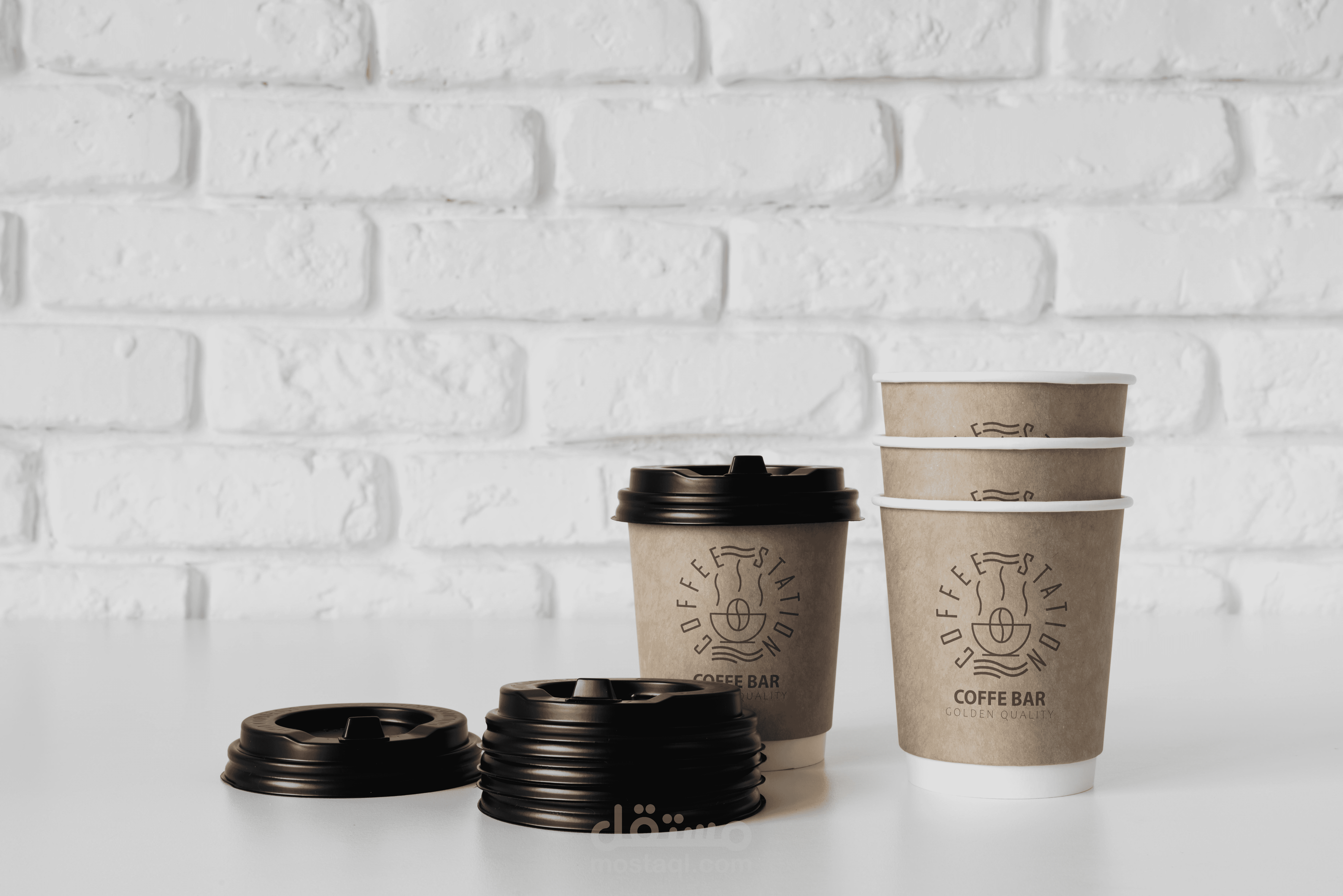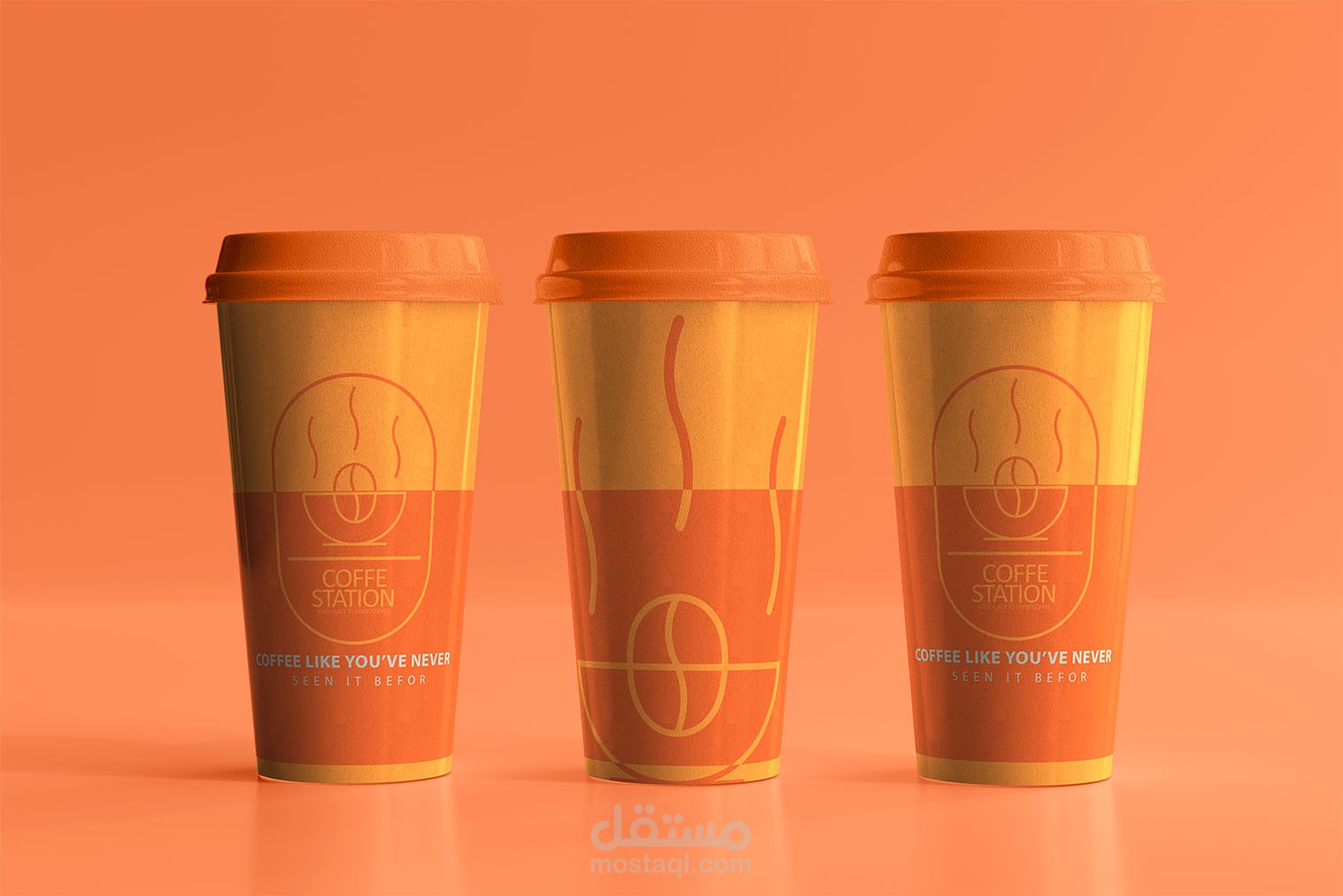 يضم المشروع تصميم شعار العلامة التجارية بكل حاجياته(logo variation,typography,color pallete...)وأيضا تصميم لتغليقأكواب القهوة.
