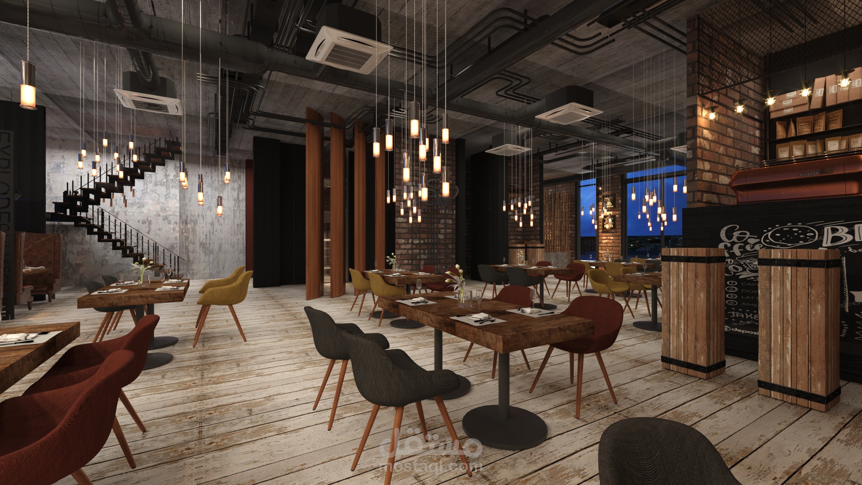 مقهى بالاستايل المعمارى الصناعى (industrial style) يوجد بجمهورية مصر العربية