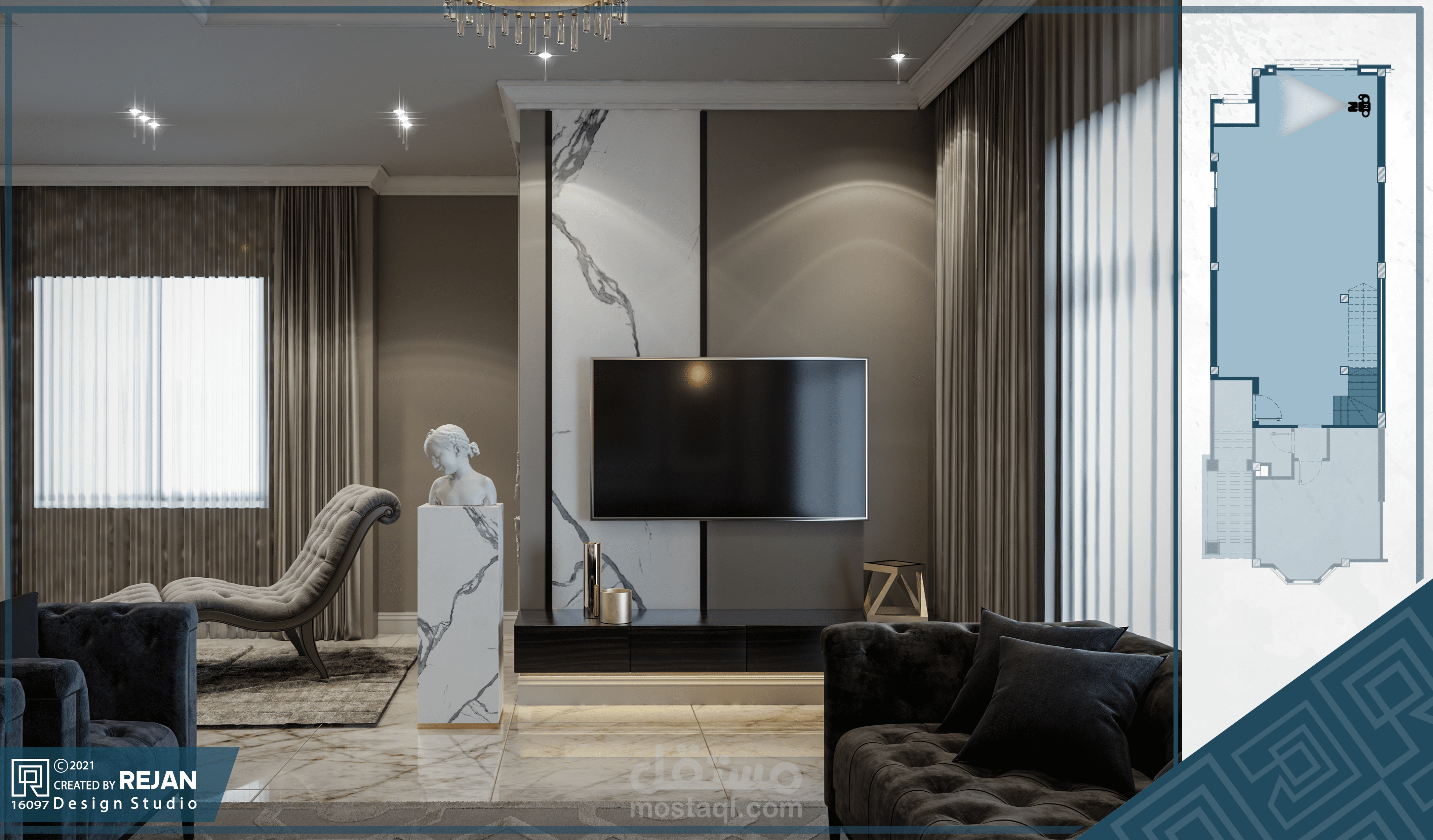 تصميم داخلي ل منطقه المعيشه في فيلا