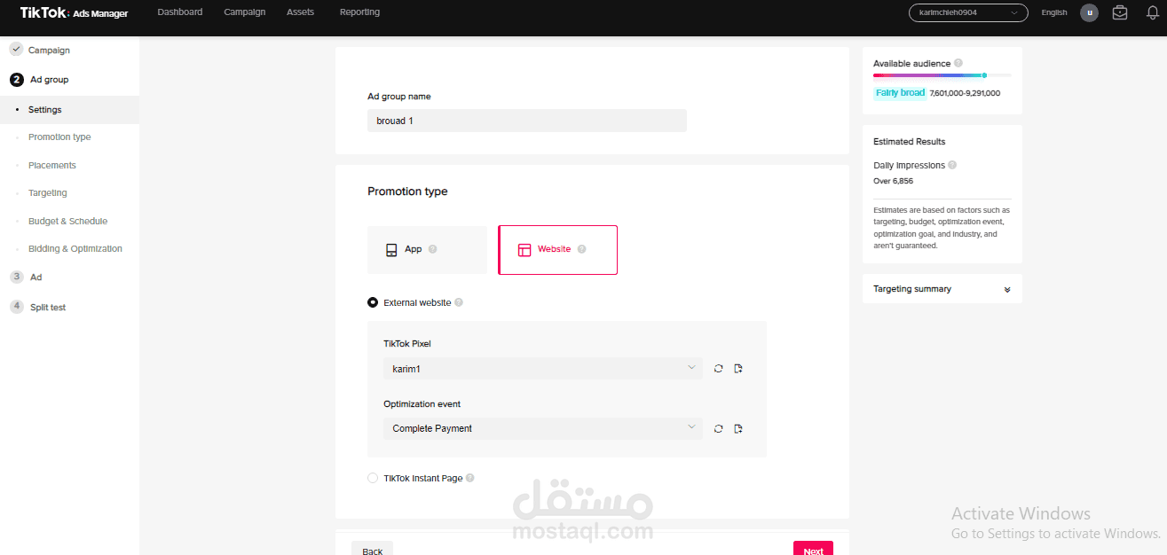 هاته عبارة عن نظرة أولية لما يمكن ان احققه على منصة تيكتوك، كما في الصورة فهي عبارة عن العدد الذي يمكن أن نستهدفه حيث يتعدى 9 مليون شخص، ب مقدرة على استهداف 6484 شخص يوميا ب 20 دولار فقط